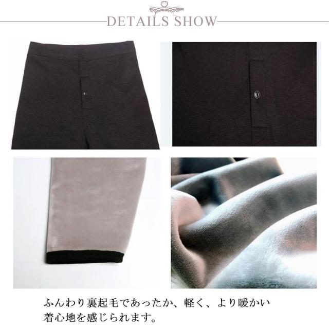 | 真冬のインナーとしても最適な裏起毛ロングタイツ。 ふんわり裏起毛であったか、軽く、より暖かい着心地を感じられます。 ソフトな肌ざわりが心地よさを引き立て、しっかり防寒、防寒性アップ。 体温で温められた空気をしっかりキープして逃さない高い保温力。 伸縮性抜群の生地でどんな動きにも体にフィットして窮屈さを全く感じません。 補強縫製を施しているので、耐久性が増すだけでなくスタイリッシュなデザインです。 冬の日常需要を満たすことができ、インナーウェア、部屋着や就寝時にも大活躍! | |