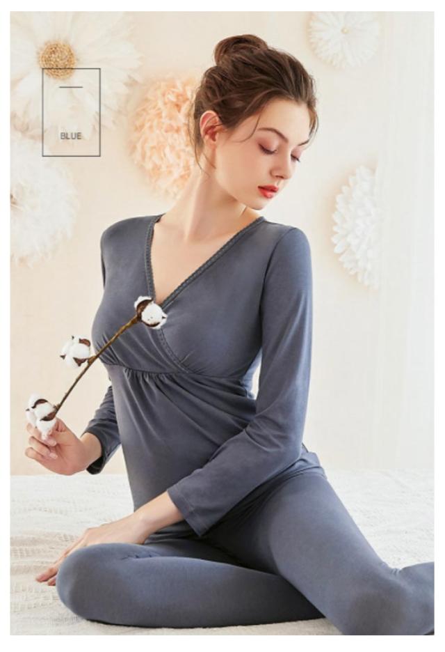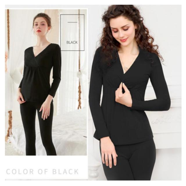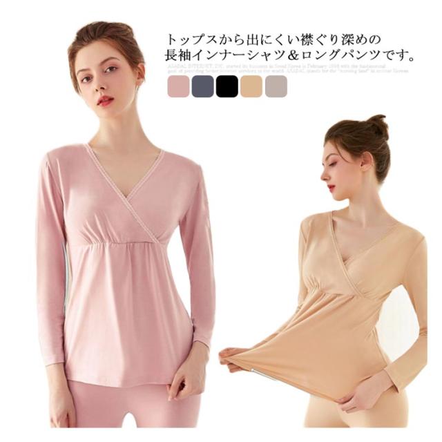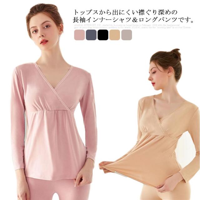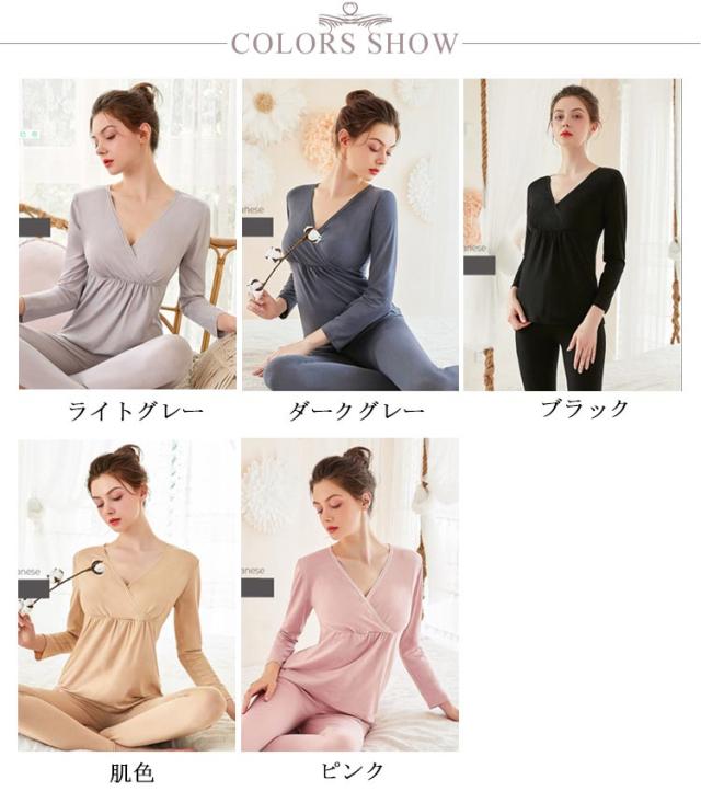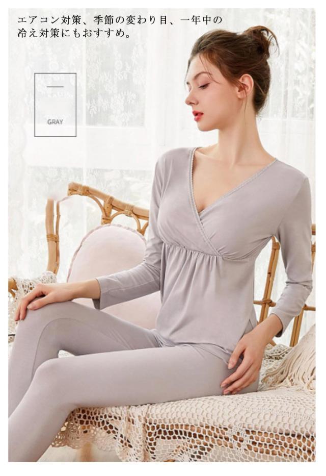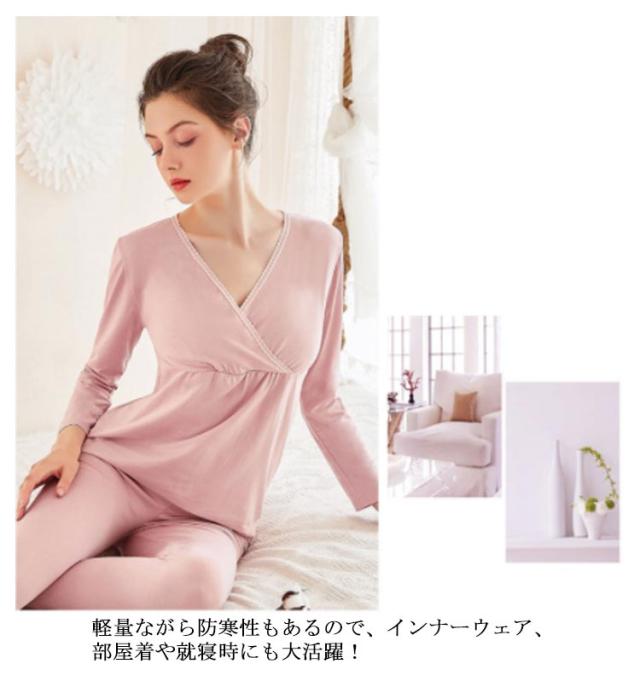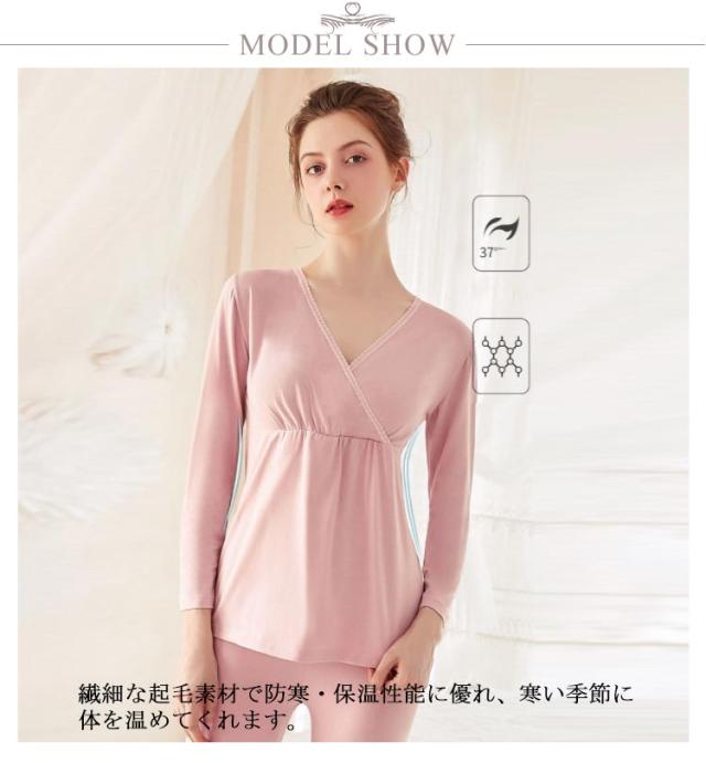 マタニティ 暖かい 授乳口 クロスオープン?カシュクールタイプ 産前産後用 あったかインナー 発熱 ズボン下 ロングパンツ 防寒 ママ アンダーウェア 秋冬 長袖シャツ 保温 肌着 妊婦 パジャマ 上下セット