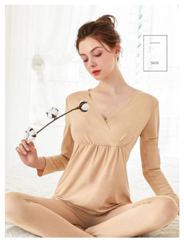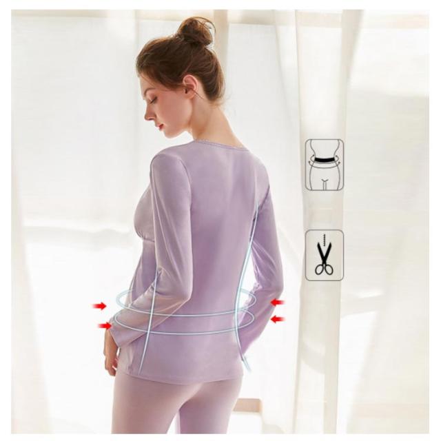 | トップスから出にくい襟ぐり深めの長袖インナーシャツ&ロングパンツです。 クロスオープン授乳のときは片手でサッと引き下げるだけでOK。 繊細な起毛素材で防寒・保温性能に優れ、寒い季節に体を温めてくれます。 パンツはアジャスター付きで妊娠初期から産後までサイズぴったり。 心地よいストレッチ性で体に自然にフィットし、重ね着をしても着ぶくれしません。 軽量ながら防寒性もあるので、インナーウェア、部屋着や就寝時にも大活躍! エアコン対策、季節の変わり目、一年中の冷え対策にもおすすめ。 | |