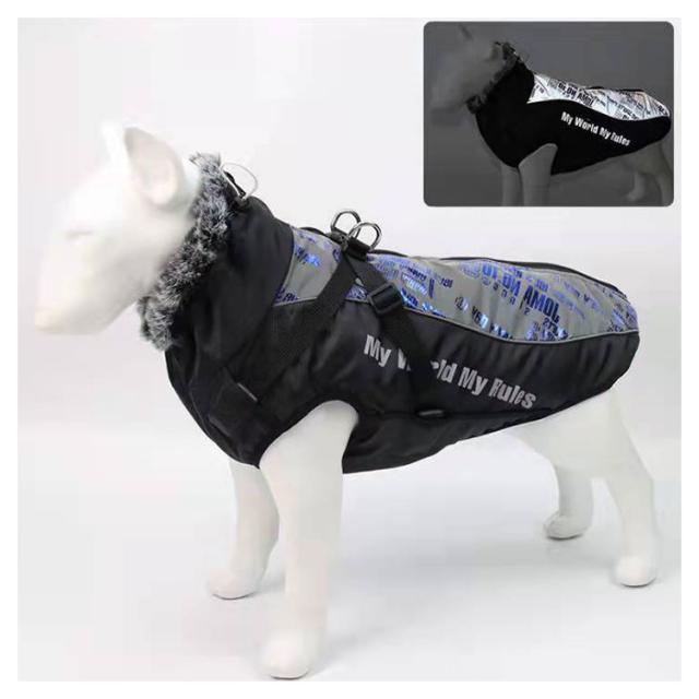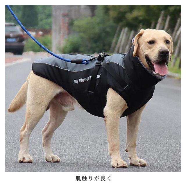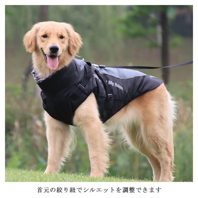 暖かい ラブラドールレトリバー ドッグウェア 中綿ベスト 犬服 アウター リード穴付き 大きいサイズ 防風 反射ライン 中型犬 大型犬 ジャケット ハイネック あったか 着せやすい 袖なし ゴールデンレトリバー 防水