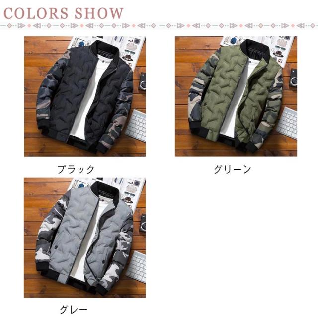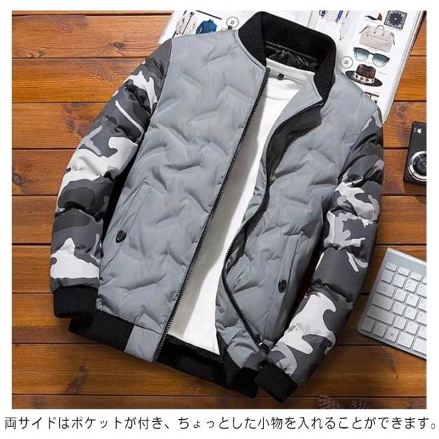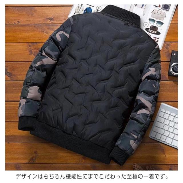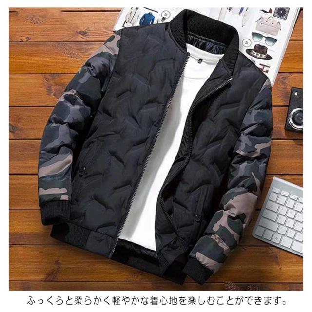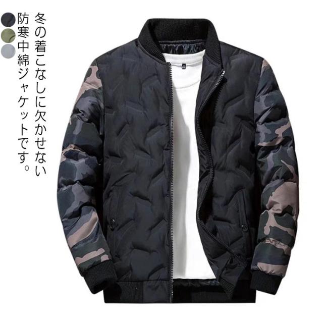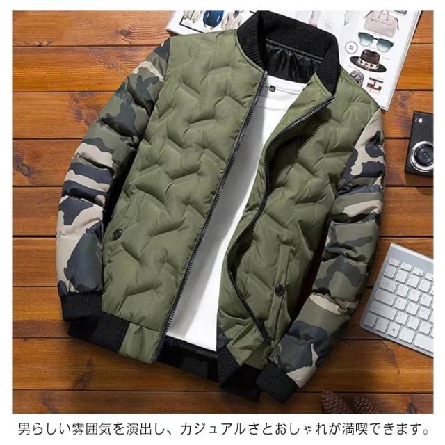 中綿ジャケット メンズ 迷彩柄 ミリタリー ブルゾン キルティング アウター 大きいサイズ 冬服 体型カバー 保温 通学 防寒 通勤 寒さ対策