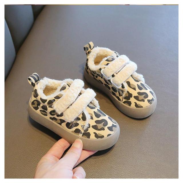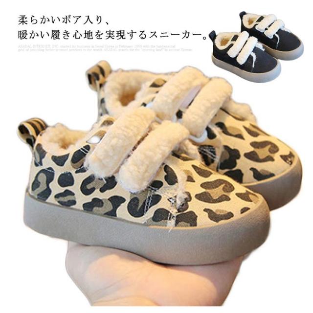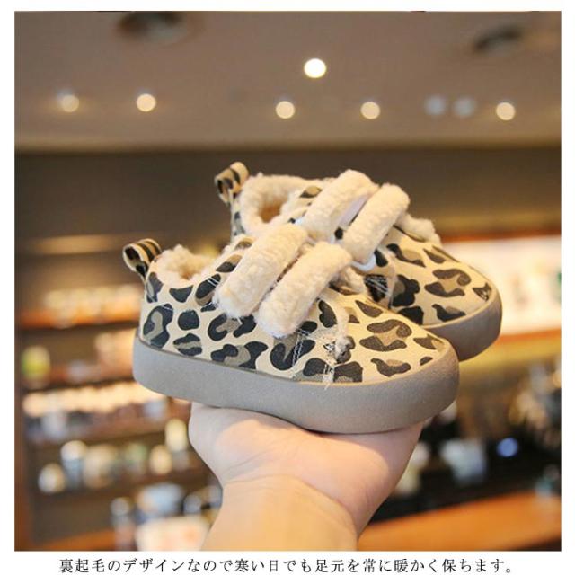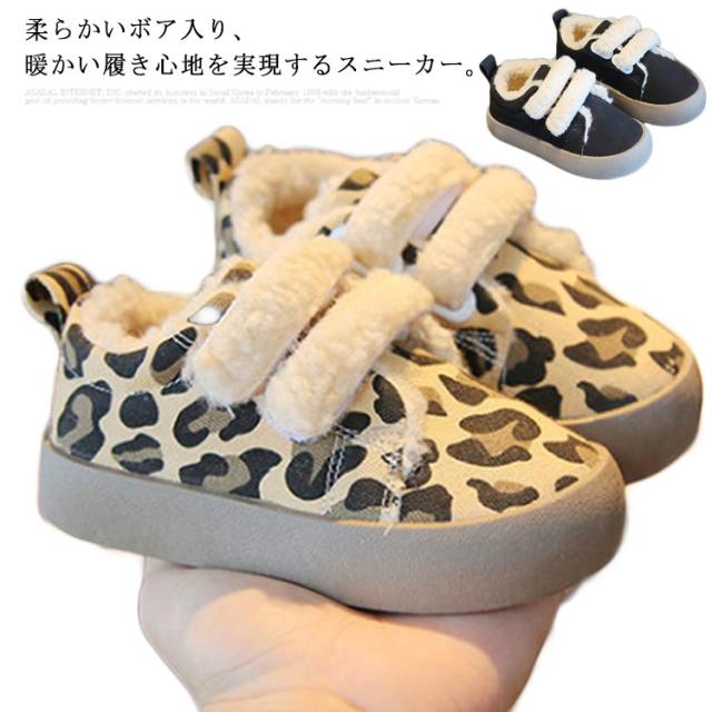 あったか 女の子 キッズ用 子供靴 男の子 裏起毛 キャンバス ヒョウ柄 裏ボア 歩きやすい カジュアル 柔らかい レオパード 暖かい 秋冬 防寒 防滑 通園通学 ベビー マジックテープ スニーカー
