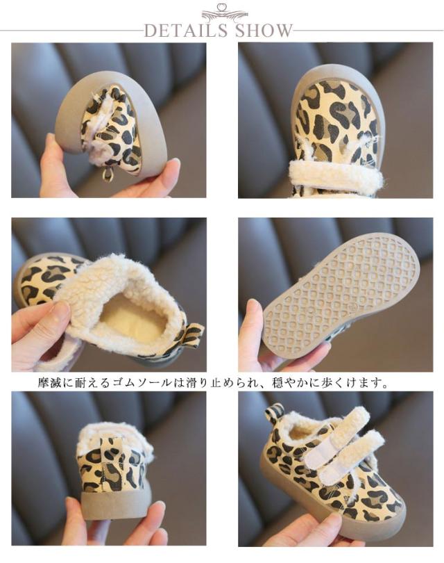 | 柔らかいボア入り、暖かい履き心地を実現するスニーカー。 裏起毛のデザインなので寒い日でも足元を常に暖かく保ちます。 おしゃれなレオパード柄デザインでどんな服にもコーデしやすいです。 摩滅に耐えるゴムソールは滑り止められ、穏やかに歩くけます。 お子様の足に負担をかけにくい軽量設計です。 通学、通園、外出、旅行、普段履き幅広い用途にご利用いただけます。 | |