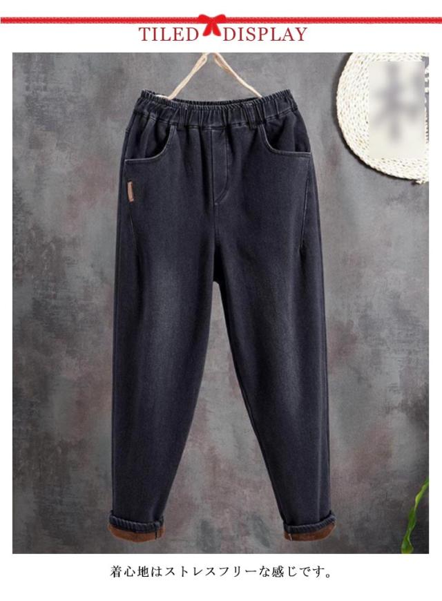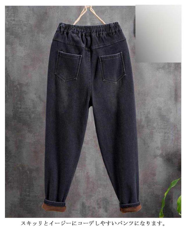 デニム サルエル 裏起毛パンツ 大きいサイズ 裏ボア 裏ボアデニムサルエルパンツ ウエストゴム サルエルパンツ あったか ボア ボトムス ボアパンツ レディース レディース