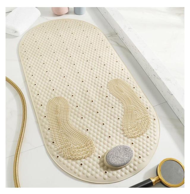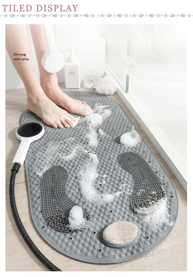 | 入浴中、ずれやすい場所の滑り止め対策に最適なお風呂マットです。 表面に滑りにくい形状で、足触りが良く、滑り止め効果は抜群です。 角質取り石が付属して、かかと古い角質除去に最適、誰でもスムースな足裏に! 底面に強力吸盤でしっかり浴槽の底面や地面と吸着固定し、滑りや転倒を防ぎます。 透水穴の設計で水切れがよく、常に清潔で安心してご利用になります。 丸洗いOK!とっても扱いやすくて、使用後の収納も邪魔になりません。 | |