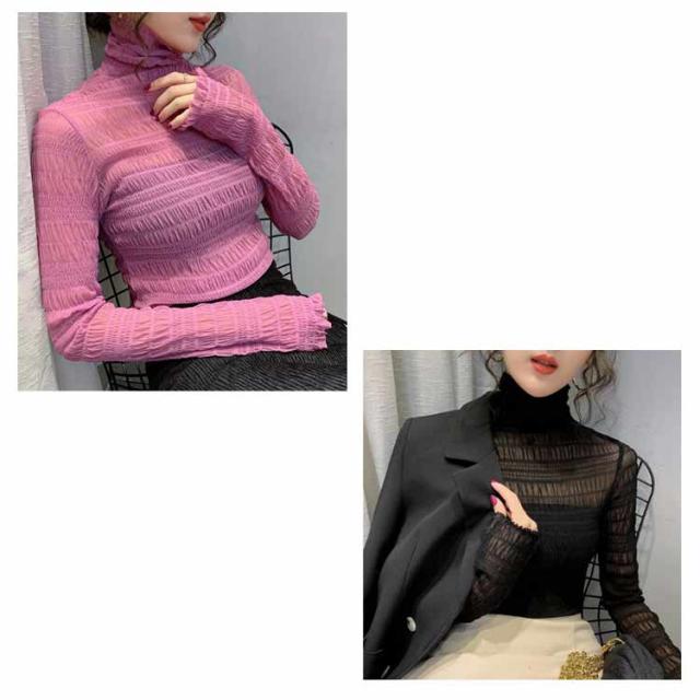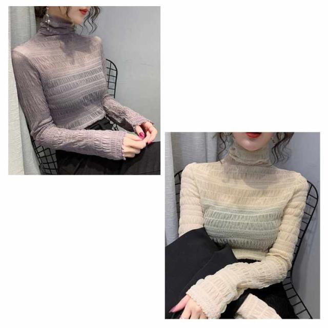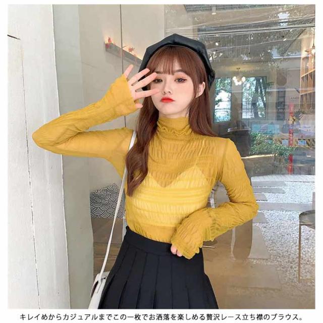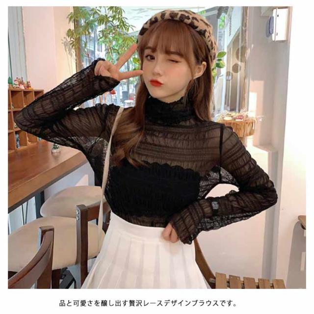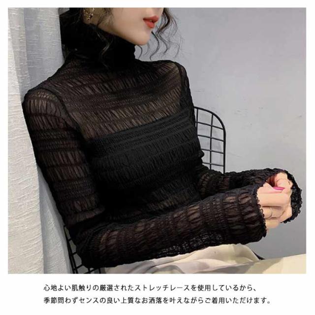 ハイネック レディース トップス 柄 通勤 OL レース 総レースブラウス インナー レース インナー 長袖 レース ブラウス 総レースブラウス シャツ 肌着 韓国 ファッション 立ち襟 トップス フリル