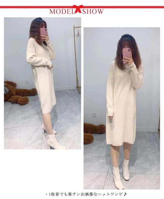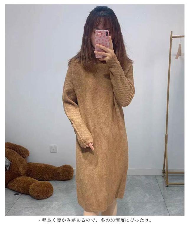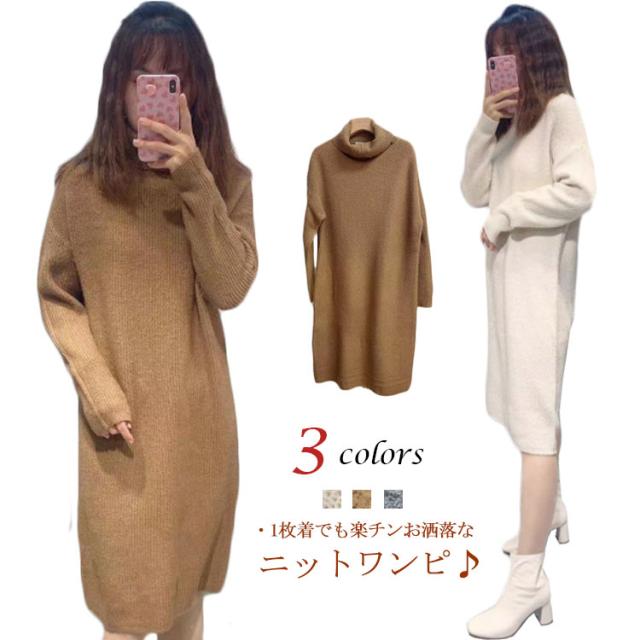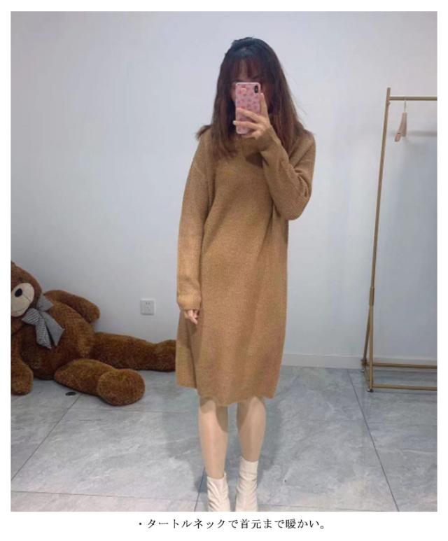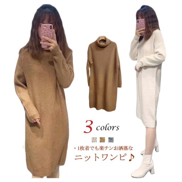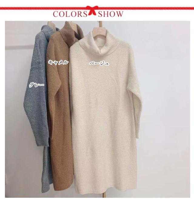 ニット ワンピース ニットワンピース ミモレ セーター ロング丈 セーター タートルネック ベージュ ゆったり 秋冬 ミモレ丈 グレー キャメル あったか シンプル