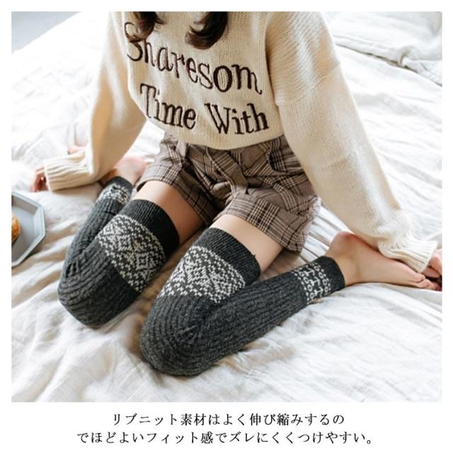 | ニーハイ感覚で穿けるロング丈レッグウォーマー。 厚みのあるニット生地で、ぬくぬく保温力アップ。 程よいフィット感が美脚・脚長効果も◎ レトロな風合いを演出してくれるエスニック柄模様。 | |