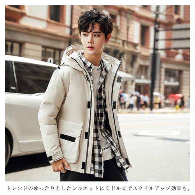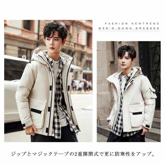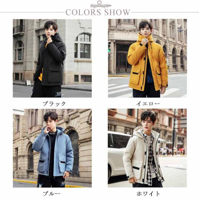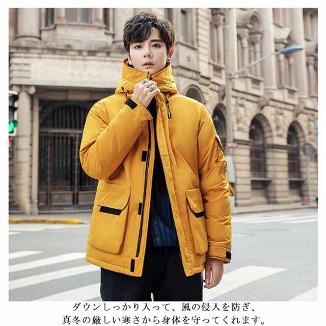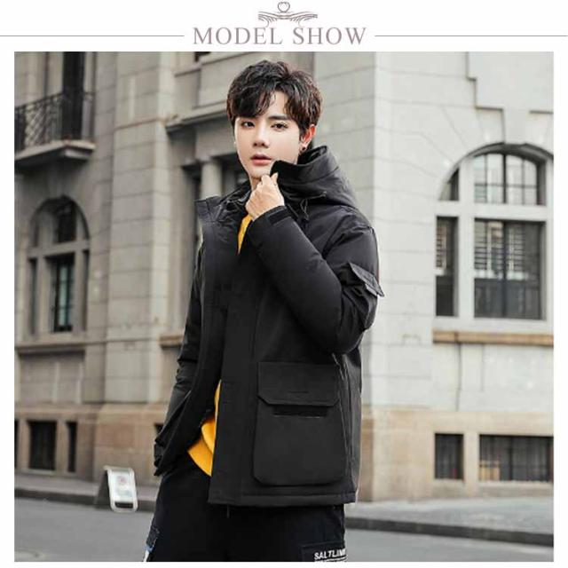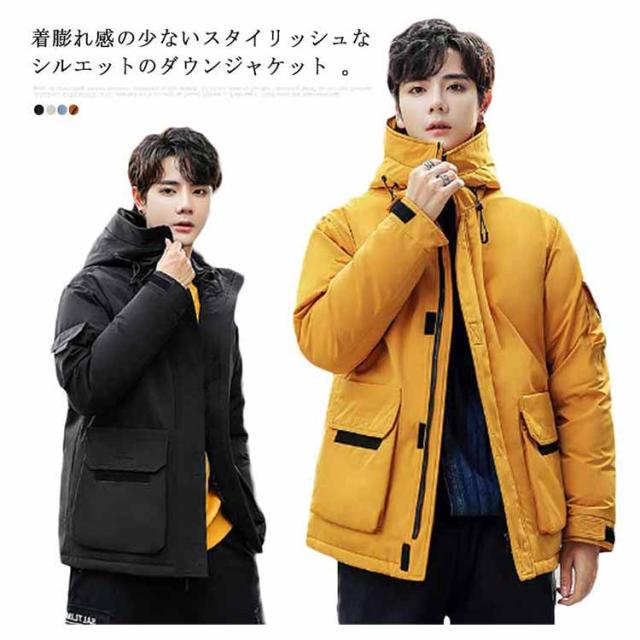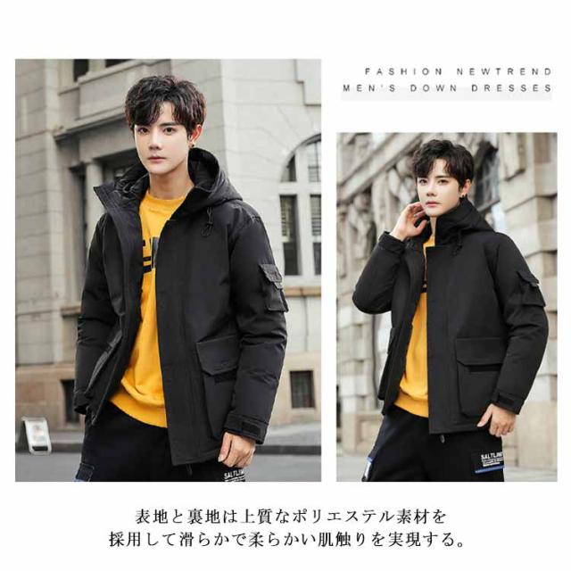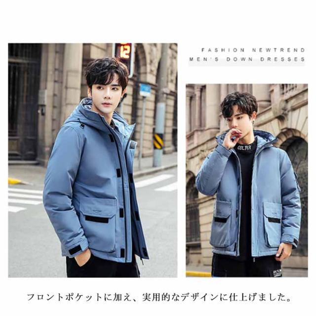 フード付き ダウンジャケット 保温 冬服 ジャンパー アウター 防寒 無地 防風 長袖 ブルゾン メンズ 暖かい 軽量 ダウンコート おしゃれ ショート丈 アウトドア 通勤 通学 スタイリッシュ 厚手 秋 ストリート