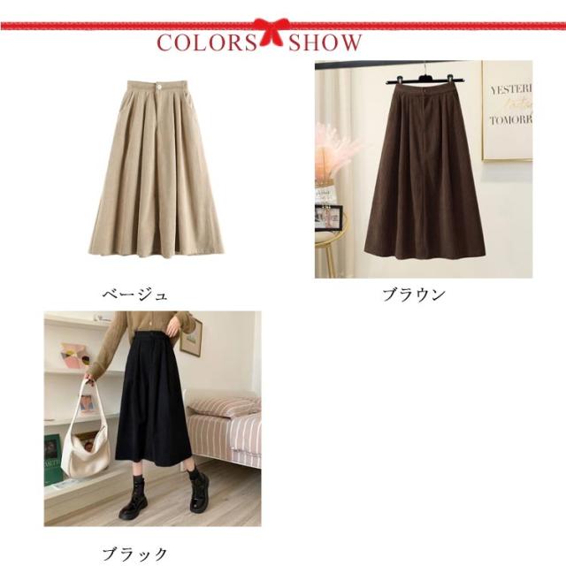 フレアスカート コーデュロイフレアスカート 大きいサイズ 秋冬 ひざ下 膝下 ロングスカート ウエストゴム ロンスカ コーデュロイ オシャレ マキシ丈 タックスカート コーデュロイスカート カジュアル ナチュラル おしゃれ ロング丈