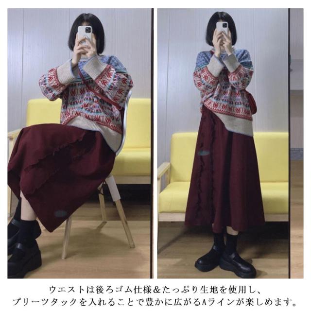 ロング丈 コーデュロイ コーデュロイフレアスカート コーデュロイスカート 膝下 ひざ下 ロングスカート 大きいサイズ マキシ丈 秋冬 タックスカート ロンスカ ウエストゴム ロング丈 カジュアル ナチュラル おしゃれ フレアスカート