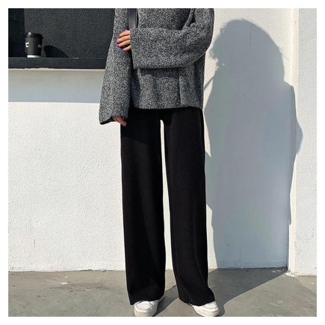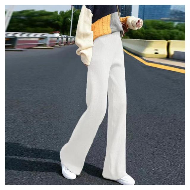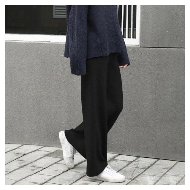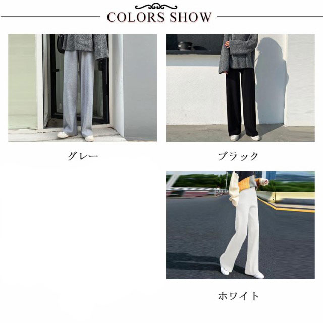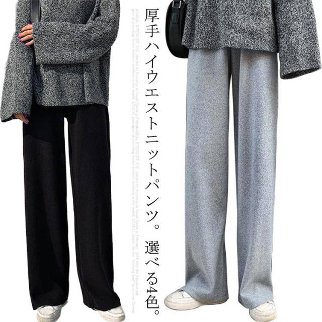 ワイドパンツ ニットパンツ レディース リブパンツ 秋冬 秋 冬 リブ リブニットパンツ ウエストゴム ストレートパンツ プリーツパンツ 大きいサイズ カジュアル