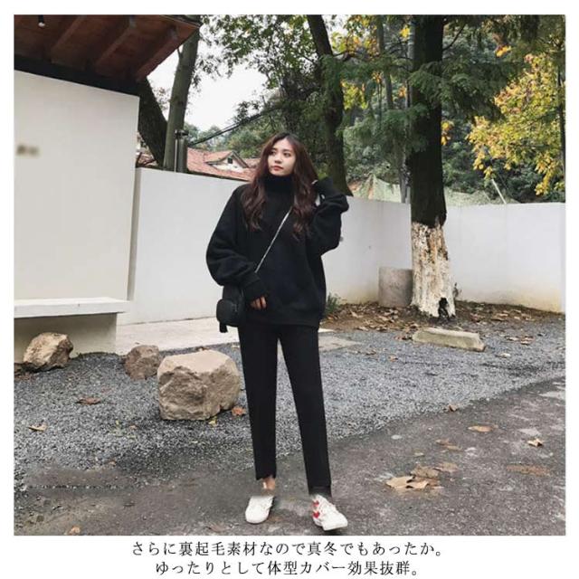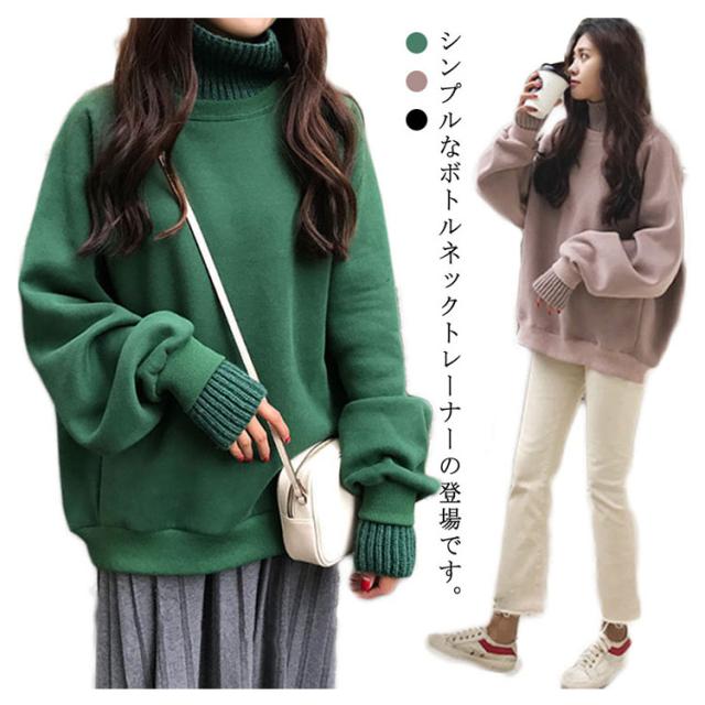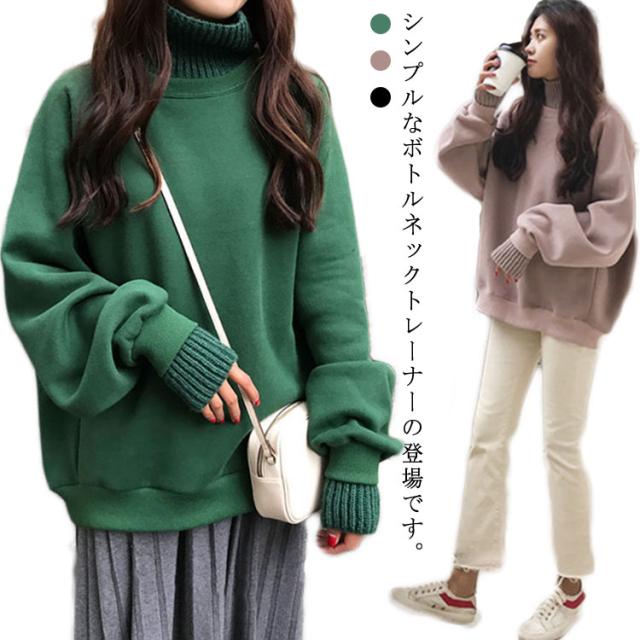 レディース ボトルネックトレーナー プルオーバー トップス ハイネック ボトルネック パーカー トレーナー シンプル 無地 裏起毛 トレーナー