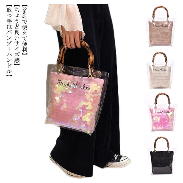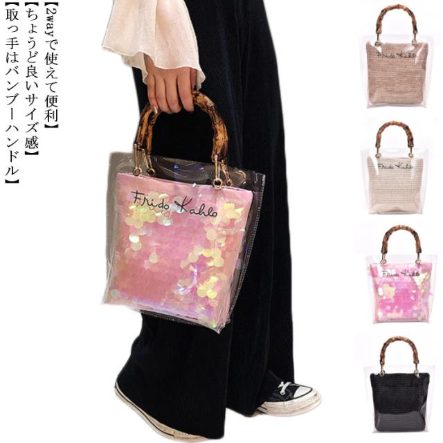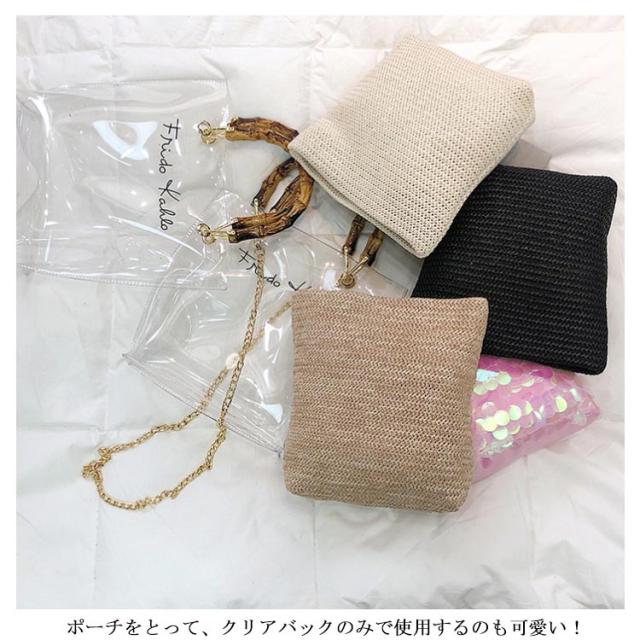 可愛い 2way 透明 ショルダーバッグ リゾート かばん ビニール バッグ ハンドバッグ ポーチ付 鞄 夏バッグ レディース おしゃれ カジュアル 高見え 手提げ 夏 海 ビーチ クリアバッグ