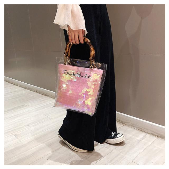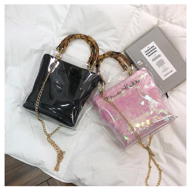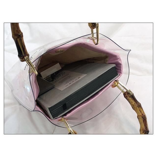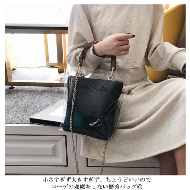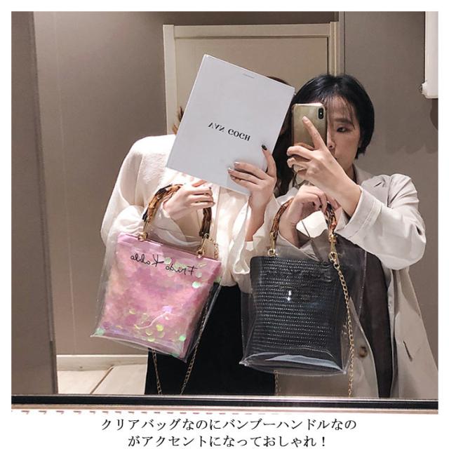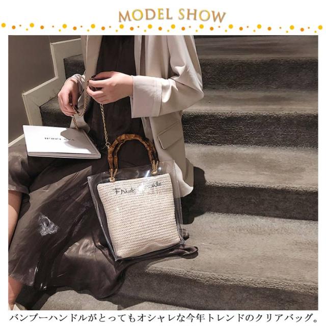 | バンブーハンドルがとってもオシャレな今年トレンドのクリアバッグ。 【ちょうど良いサイズ感】 小さすぎず大きすぎず、ちょうどいいので コーデの邪魔をしない優秀バッグ◎ 【取っ手はバンブーハンドル】 クリアバッグなのにバンブーハンドルなのがアクセントになっておしゃれ! 【2wayで使えて便利】 ポーチをとって、クリアバックのみで使用するのも可愛い! コーデに合わせて変化できるのが嬉しい. | |