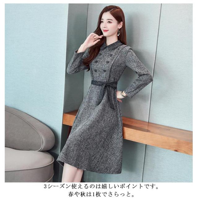 | カジュアルデート服からフォーマルでかっちりしたシーンまで使える万能ワンピース。 しっかりとした素材なので、寒い季節にも暖かく着れる優秀なワンピースです。 3シーズン使えるのは嬉しいポイントです。 春や秋は1枚でさらっと。 1枚でキレイめコーディネイトが完成する万能アイテムです。 | |