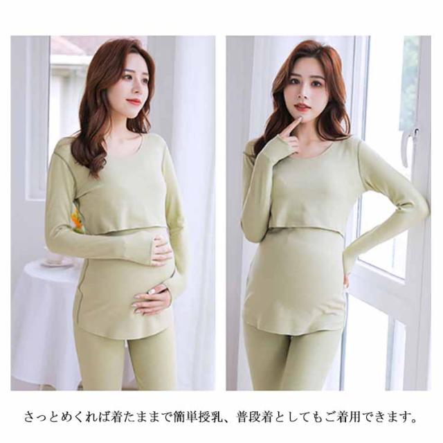 tシャツ 授乳インナー マタニティ 上下セット タイツ あったかインナー 授乳口付き ウェスト調節可能 マタニティインナー 妊婦 マタニティウェア シンプル 下着 授乳服 ママシャツ 重ね着 あったかインナー 秋冬 カシュクール 授乳 産前 裏起毛