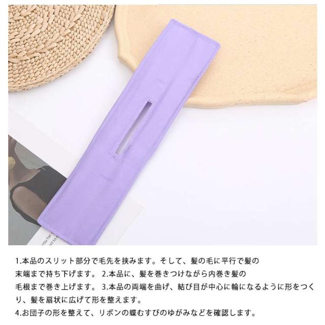 | 【使用方法】1.本品のスリット部分で毛先を挟みます。そして、髪の毛に平行で髪の末端まで持ち下げます。 2.本品に、髪を巻きつけながら内巻き髪の毛根まで巻き上げます。 3.本品の両端を曲げ、結び目が中心に輪になるように形をつくり、髪を扇状に広げて形を整えます。 4.お団子の形を整えて、リボンの蝶むすびのゆがみなどを確認します。 【ヘアツイストの特徴】操作が簡単で、メイクやお洋服のマッチングにかかる時間を大幅に短縮し、朝の眠りを深めることができます。あなたの髪をきちんと整頓してください。 【ソフト素材】柔軟で再利用可能なバンツイスターは、快適で用途の広い生地を使用しています。お手入れが簡単で洗えます。平らに置いて乾かしてください。吸湿性、吸湿発散性、耐久性、耐摩耗性に優れた性能を発揮します。 【よく使われる場合】:結婚式、成人式、七五三、記念日、パーティー、発表会、二次会などの場合におしゃれな髪型が作れます。更に、家事や運動、お風呂などの場合に髪留めとして役にたちます。 | |