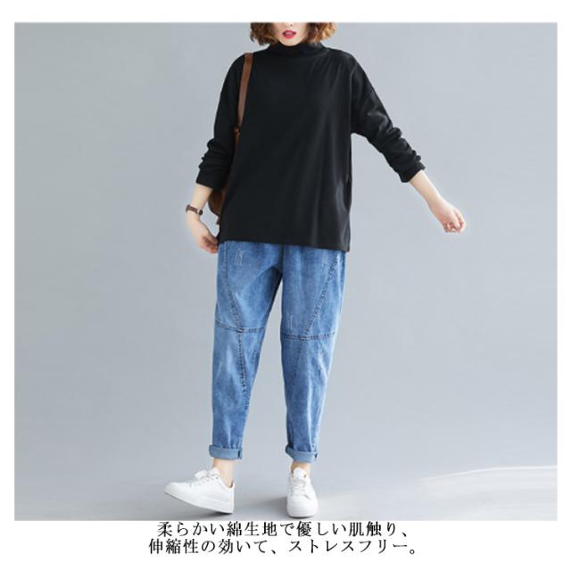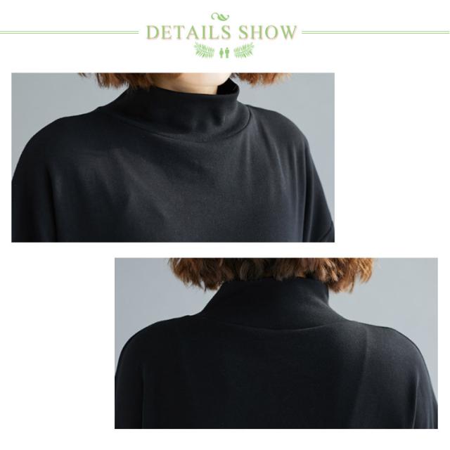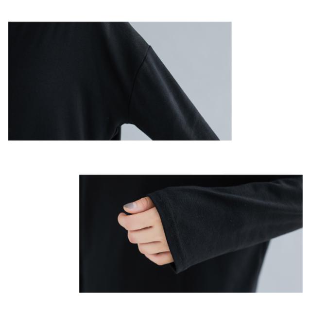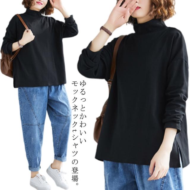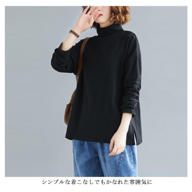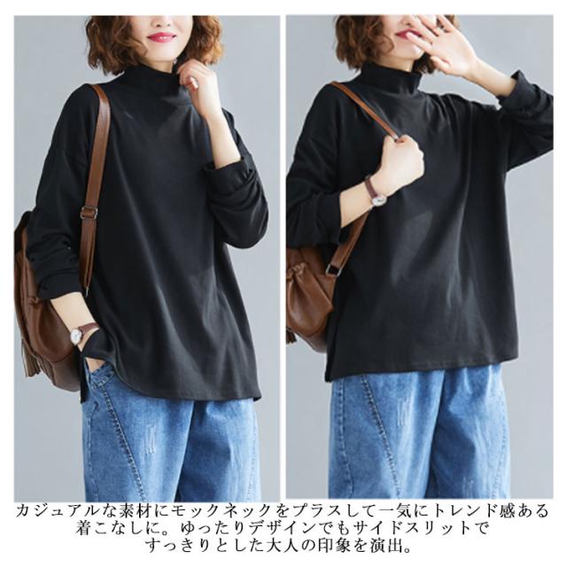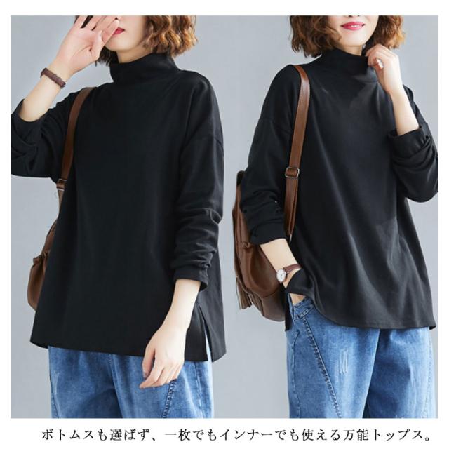 ハイネックtシャツ モックネック カットソー トップス tシャツ 無地tシャツ スリット ゆったり シンプル カジュアル 秋冬 インナー 春秋 ブラック 体型カバー