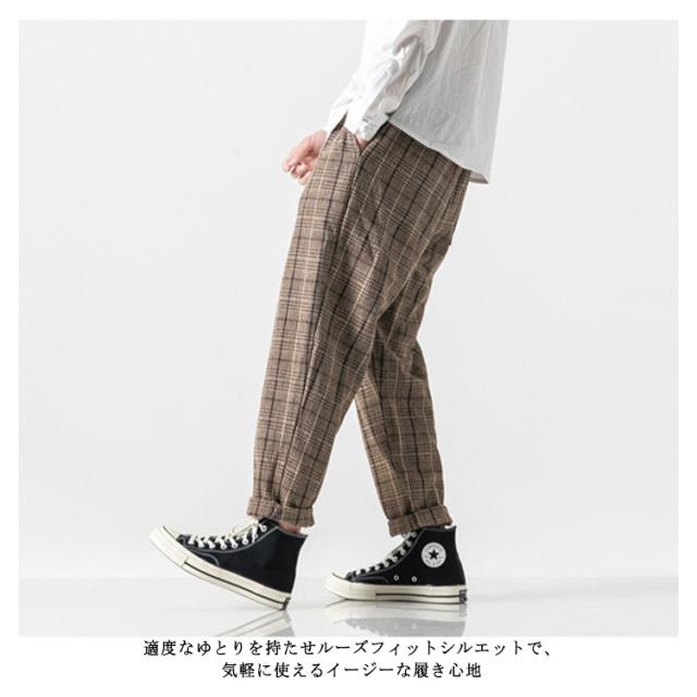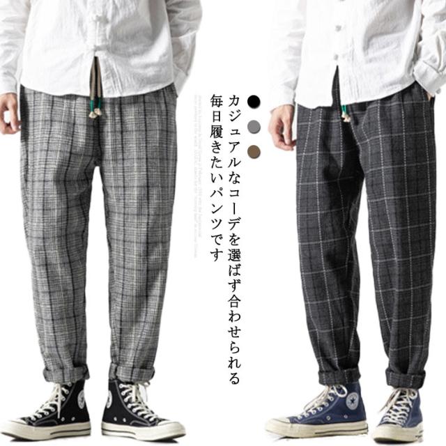 ロングパンツ サルエルパンツ ワイドパンツ 総柄 チェック柄 大きいサイズ ゆったり 秋冬 メンズ カジュアル ボトムス 厚手 リラックス感 ウエストゴム メンズファッション
