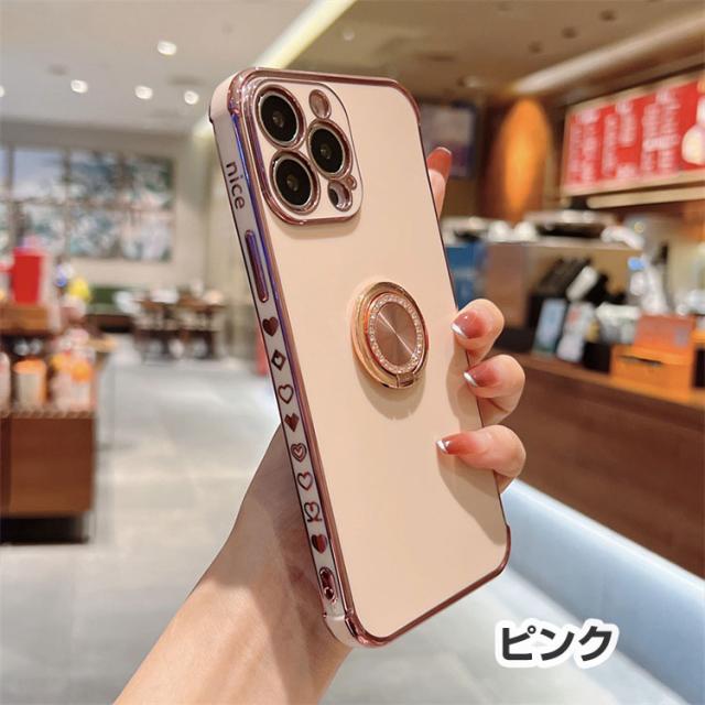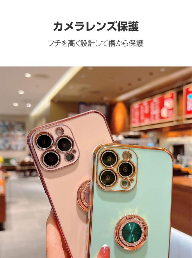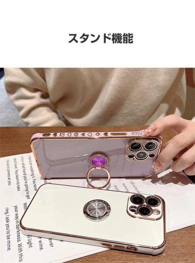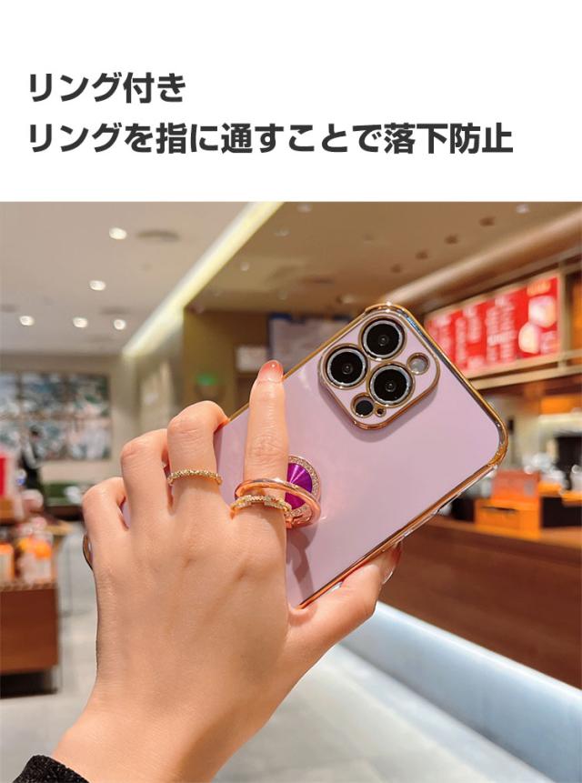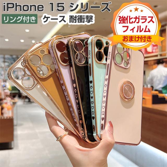 iPhone 15 ケース iPhone 15 iPhone 15 Plus iPhone 15 Pro iPhone 15 Pro Max ケース 耐衝撃 カバー レンズ 保護 メッキ仕上げされたTPU素材 リング付き スタンド機能 リングを指に通すことで落下防止 便利 実用 人気 背面カバー CASE 強化ガラスフィルム おまけ付き