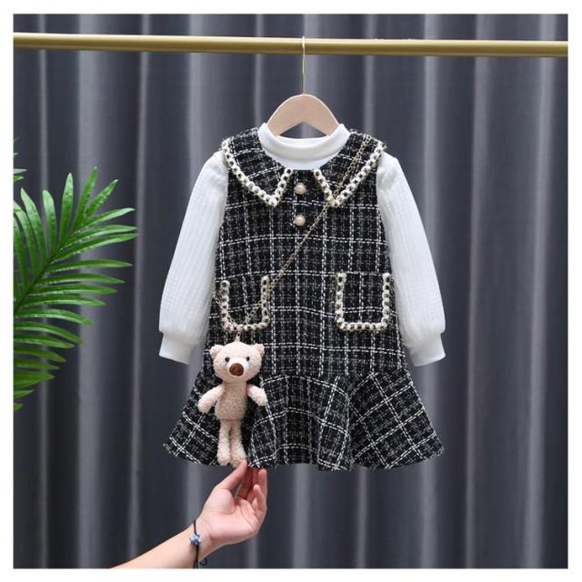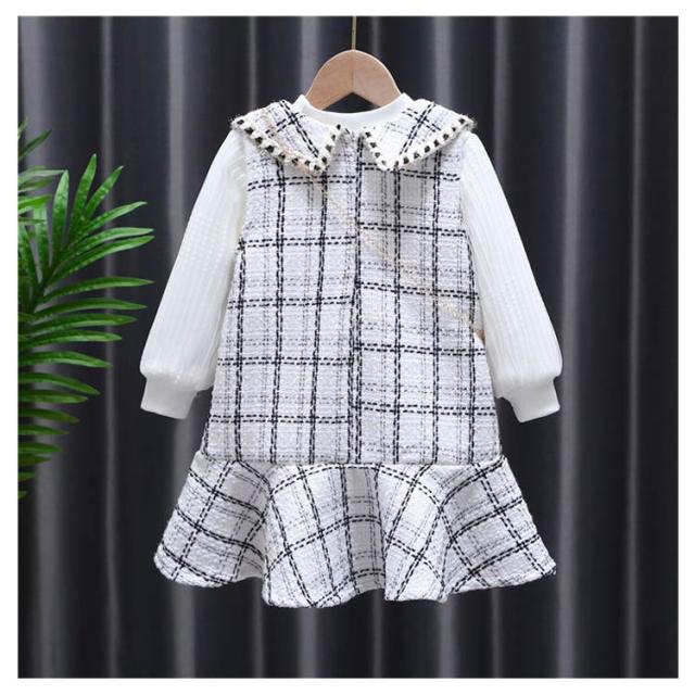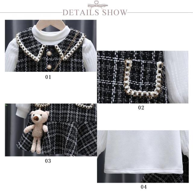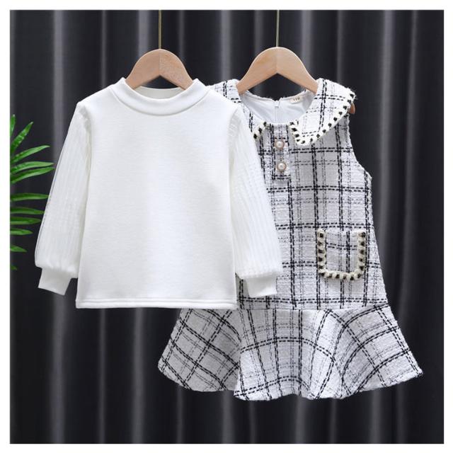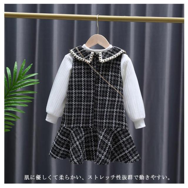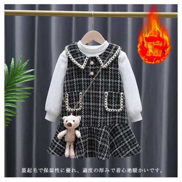 ジュニア 長袖 ジャンパースカート 2点セット 子供服 トップス 女の子 90〜140cm キッズ ベビー 2点セット オールインワン チェック柄 子ども服 セットアップ こども 裏起毛 ドレス 保育園 小学校 秋冬 フォーマル ワンピース