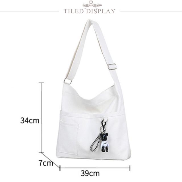 | シンプルでおしゃれなショルダーバッグ。 キャンバス生地は丈夫で、耐摩耗性と耐久性に優れており、長時間の使用が可能です。 普段の装いに気取りすぎない絶妙なお洒落感をプラスしてくれます。 A4サイズや折り畳み傘、水筒など色々入る大容量バッグで学校やお仕事など様々なシーンで活躍します。 内ポケット付きですので小物類も整理して入れることが可能です。 ファスナー付きですので盗難の防止となり、安心してご利用頂けます。 ショルダーベルトは調節可能ですので大人から子供まで幅広くご利用頂けます。 | |