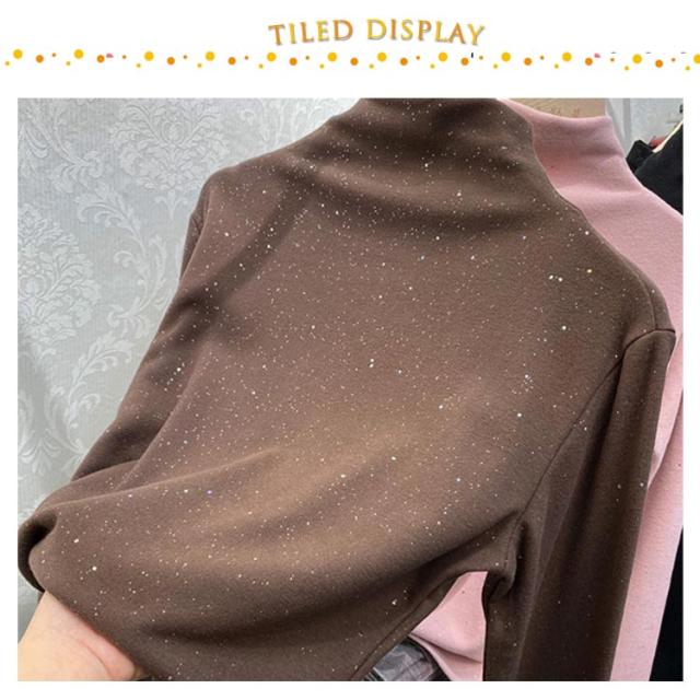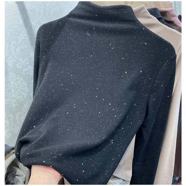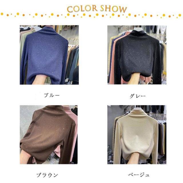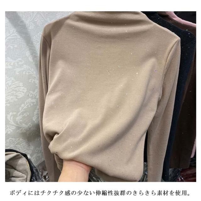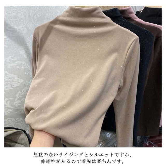きらきら インナー 秋冬 tシャツ ハイネック レディース ハイネックtシャツ ハイネックインナー トップス 起毛感 防寒 秋 冬 秋冬 おしゃれ 女性 送料無料