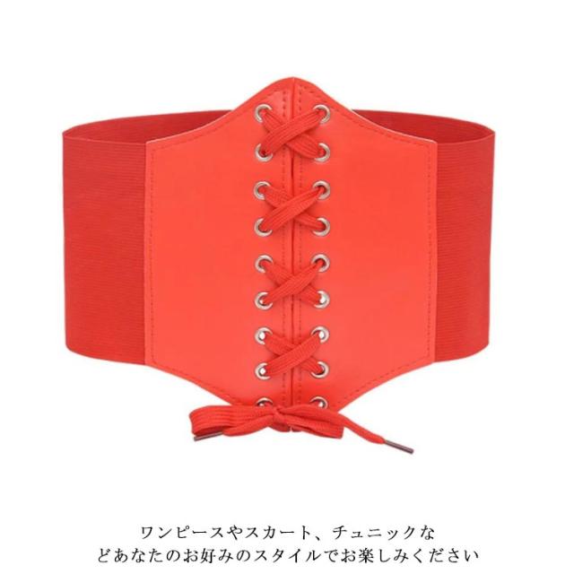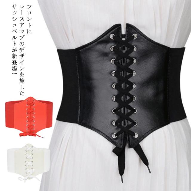 サッシュベルト フリル 60cm 全丈70cm レディース ゴムベルト シャーリングベルト 太め 太ベルト レースアップ 送料無料