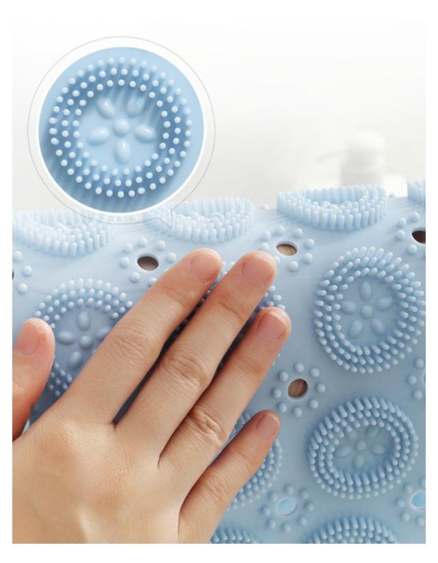 | 洗面所、バスルームなどの滑りやすい地面にピッタリのバスマットです。 表面に滑り止め模様があり、踏み心地も良く。疲れた体を癒やします。 柔らかくて曲げられる持ち運びも便利です。使用後の収納も邪魔になりません。 底面に強力吸盤でしっかり浴槽の底面や地面と吸着固定し、滑りや転倒を防ぎます。 透水穴の設計で水切れがよく、常に清潔で安心してご利用になります。 壁に吸盤で吸着できるので、収納に時間やスペースも掛からないです。 | |