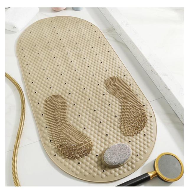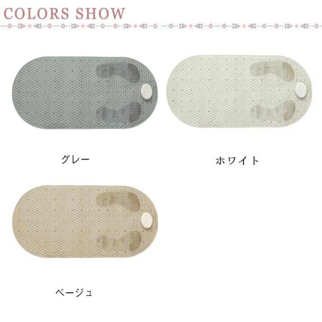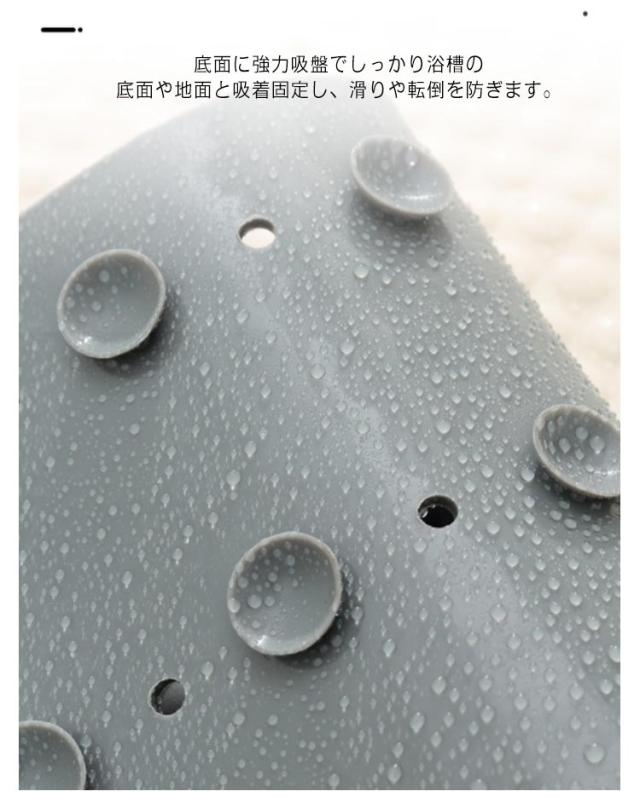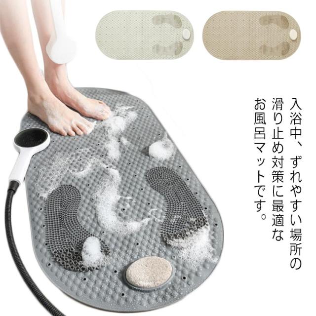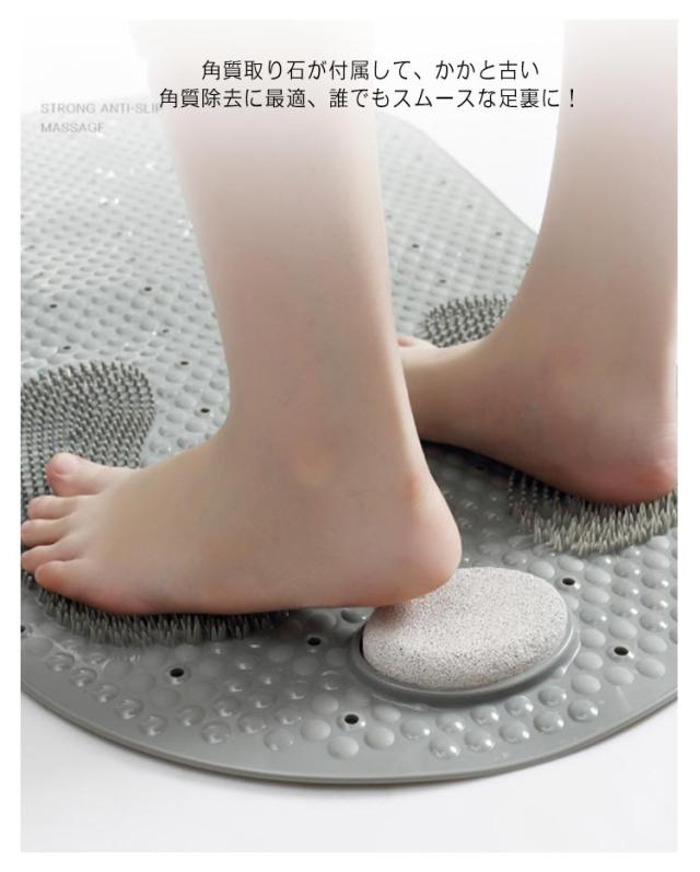 | 入浴中、ずれやすい場所の滑り止め対策に最適なお風呂マットです。 表面に滑りにくい形状で、足触りが良く、滑り止め効果は抜群です。 角質取り石が付属して、かかと古い角質除去に最適、誰でもスムースな足裏に! 底面に強力吸盤でしっかり浴槽の底面や地面と吸着固定し、滑りや転倒を防ぎます。 透水穴の設計で水切れがよく、常に清潔で安心してご利用になります。 丸洗いOK!とっても扱いやすくて、使用後の収納も邪魔になりません。 | |