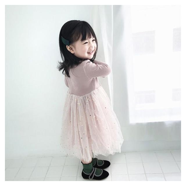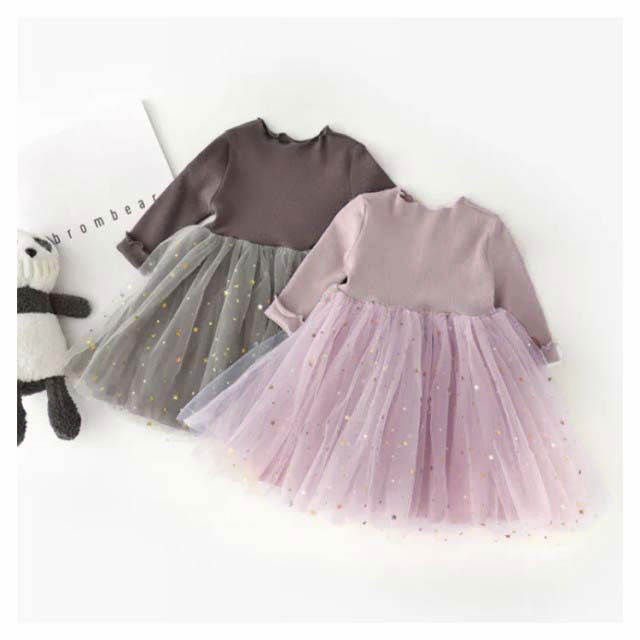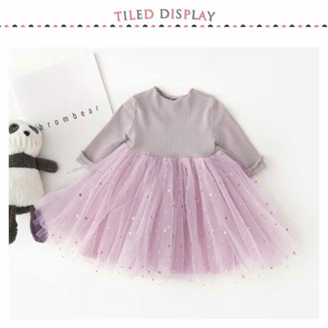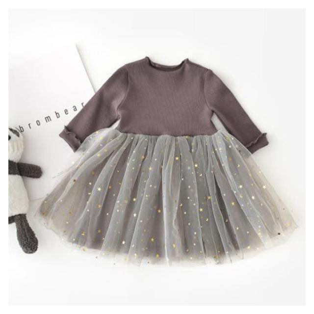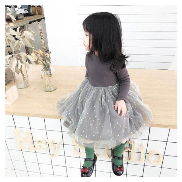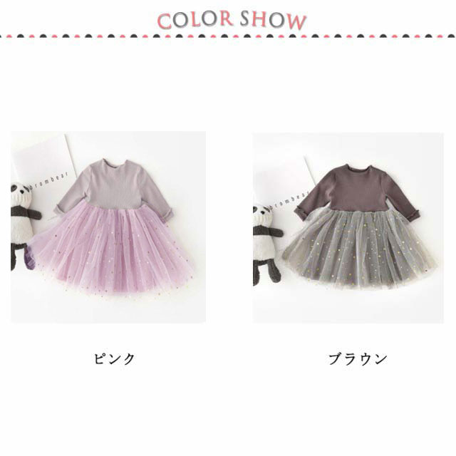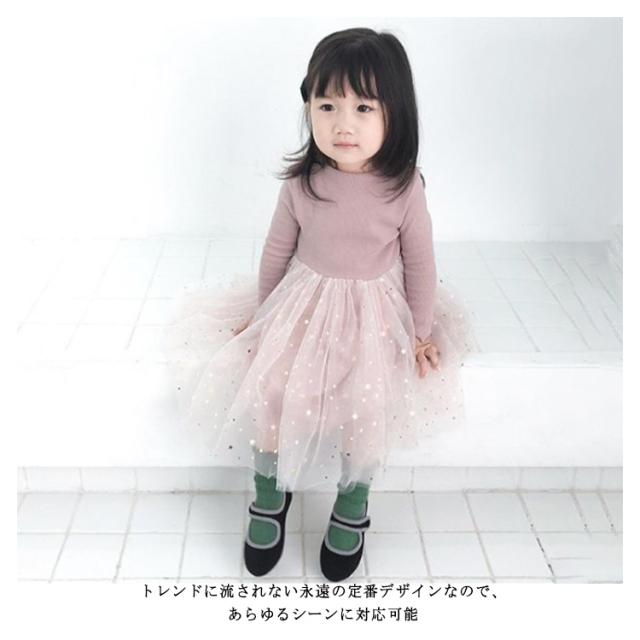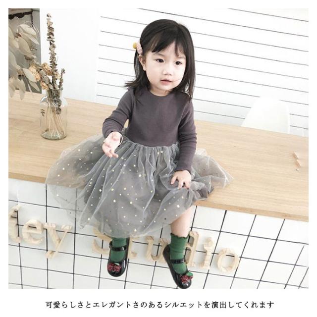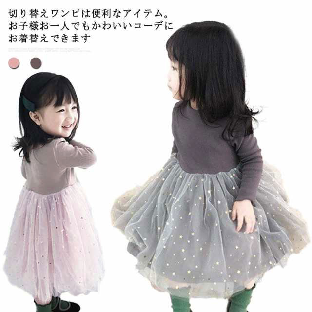 チュールスカート キッズ チュール ワンピース 長袖 ワンピース チュールドレス チュチュスカート 長袖ワンピ 切り替え ベビー 幼児 子供服 プリンセス 星柄 73 80 90 100 110