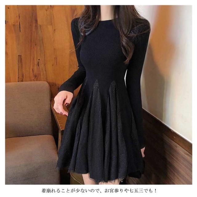 ニットワンピース 秋 裏起毛 ニット 裏ボア ドッキングワンピース フレアワンピース Aラインワンピース フレアワンピース 防寒 長袖 バイカラー 春 冬 ショートワンピース
