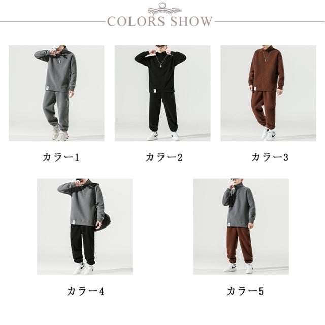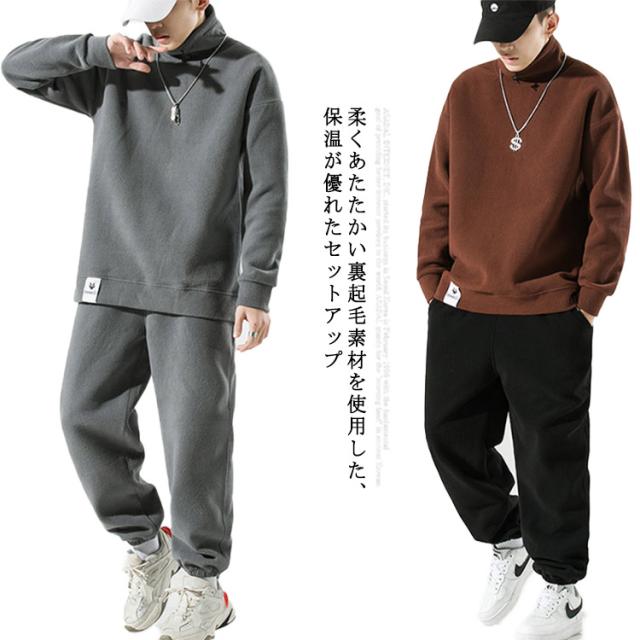 恒温素材 大きいサイズ パンツ セットアップ 秋服 メンズ ボンディング ジョガーパンツ 秋冬 ルームウエア ハイネック パンツ グレー ブラック パンツ 選べる9コーデ 冬服 冬物 ブラック パーカー