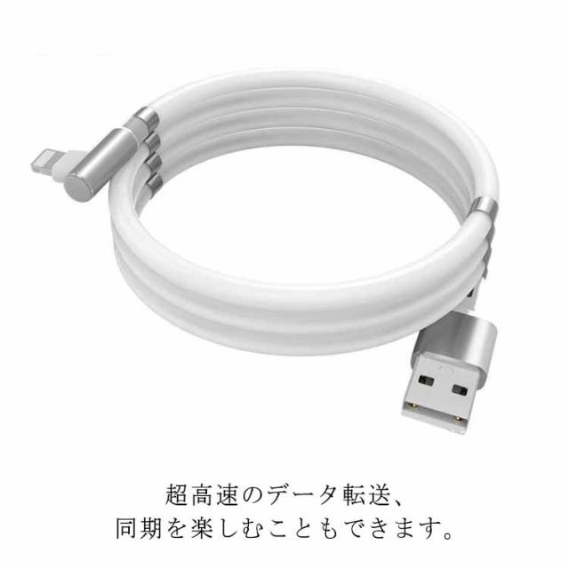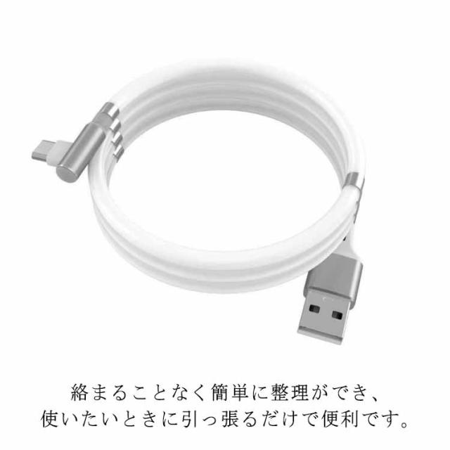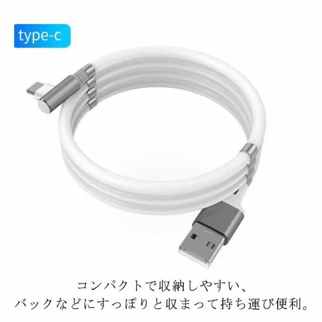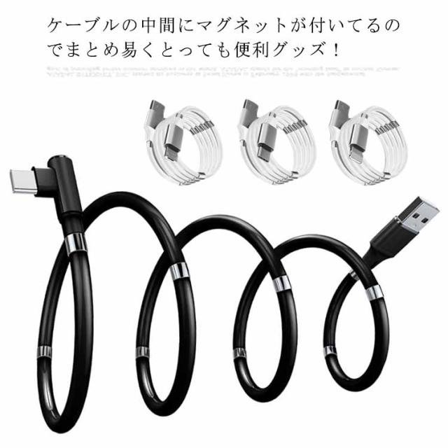 磁気吸収 マグネット式 iPad 1m&1.8m 整理 絡まない C Type Micro 3タイプ 磁石 iPhone13対応 収納しやすい Android USB充電ケーブル ライトニングケーブル Lighting 急速充電 3A 簡単脱着 断線に強い