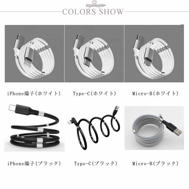 | 色 | iPhone端子(ホワイト) Type-C(ホワイト) Micro-B(ホワイト) iPhone端子(ブラック) Type-C(ブラック) Micro-B(ブラック) |