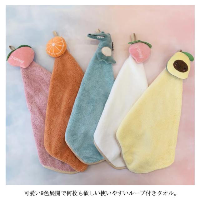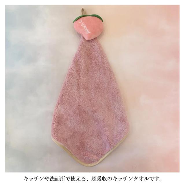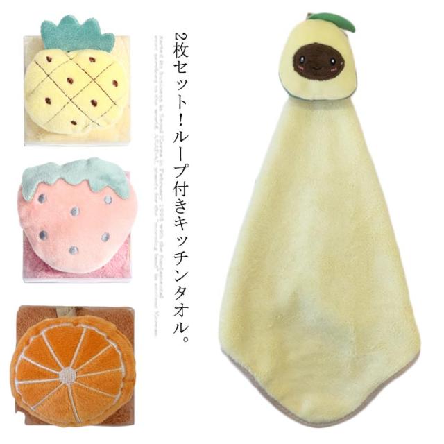 ループ付きタオル キッチンタオル 同色2枚セット かわいい ループタオル 手拭きタオル 洗面所 キッチン トイレ 手拭き 吸水 速乾 おしゃれ フルーツ ハンドタオル