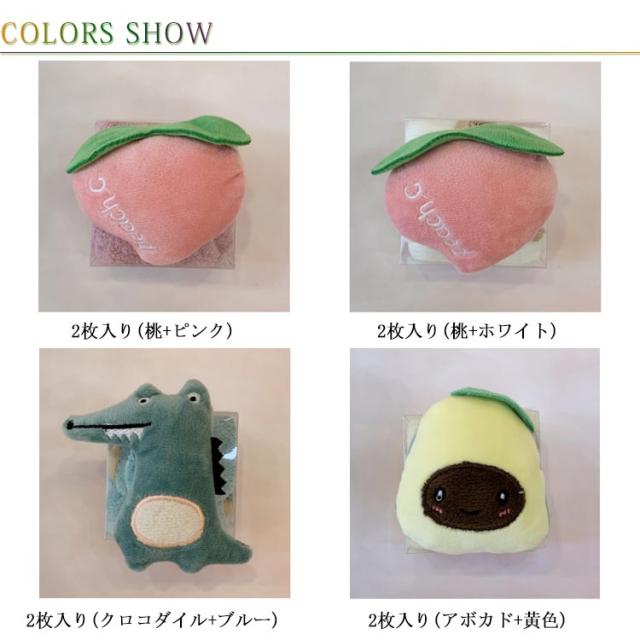 | 色 | 2枚入り(桃*ピンク) 2枚入り(桃*ホワイト) 2枚入り(クロコダイル*ブルー) 2枚入り(アボカド*黄色) 2枚入り(オレンジ*オレンジ) 2枚入り(パイナップル*黄色) 2枚入り(パイナップル*白) 2枚入り(イチゴ*ピンク) 2枚入り(イチゴ*白) |