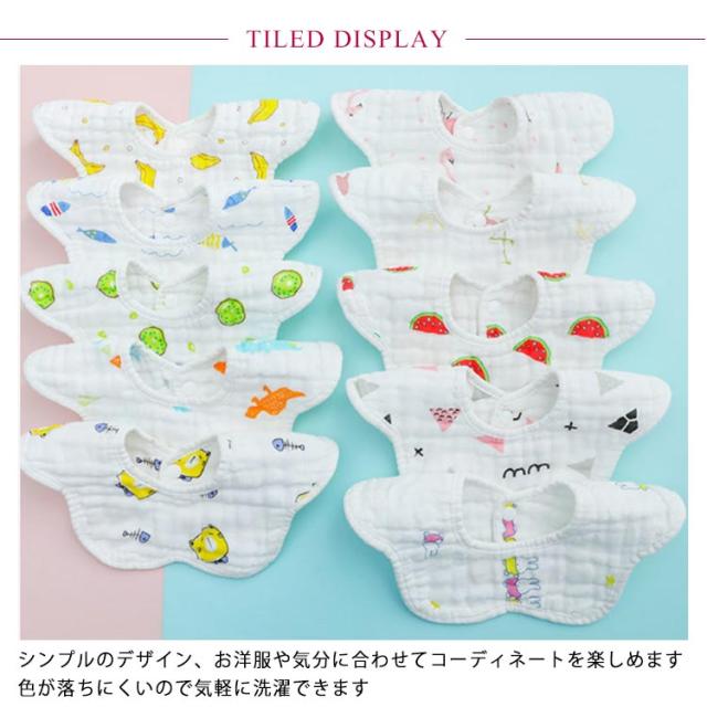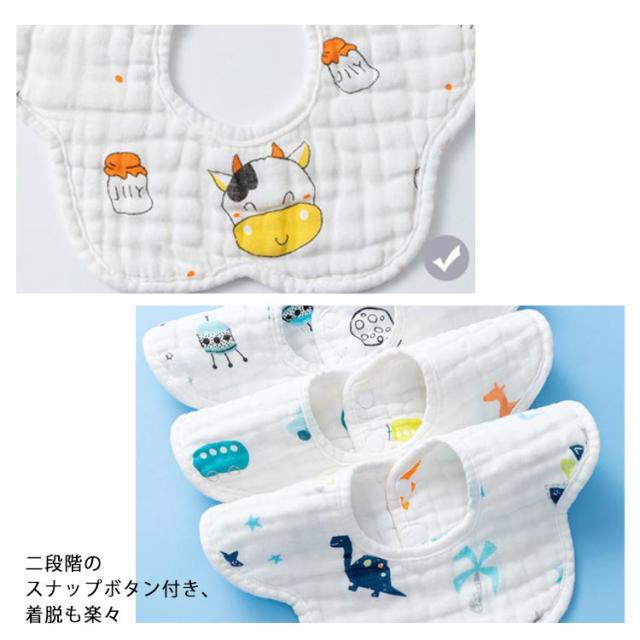 | 通気性、吸収力に優れた360度スタイ 柔らかい綿素材で8重ガーゼ、吸収力抜群 水分をさっと吸収してすぐに乾くのでいつでもサラサラ! 二段階のスナップボタン付き、着脱も楽々 シンプルのデザイン、お洋服や気分に合わせてコーディネートを楽しめます 色が落ちにくいので気軽に洗濯できます | |