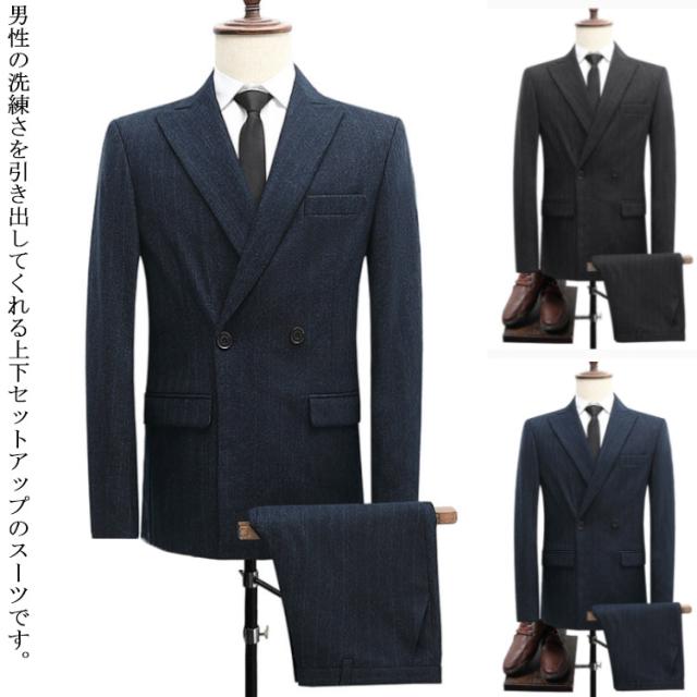 スーツ メンズスーツ 2点セット ジャケット ズボン 2つボタン スーツセット ビジネススーツ スリムスーツ 春夏 秋冬 男性 ビジネス フォーマル 結婚式 面接 オシャレ 大きいサイズ ブルー ブラック M L 2L 3L 4L