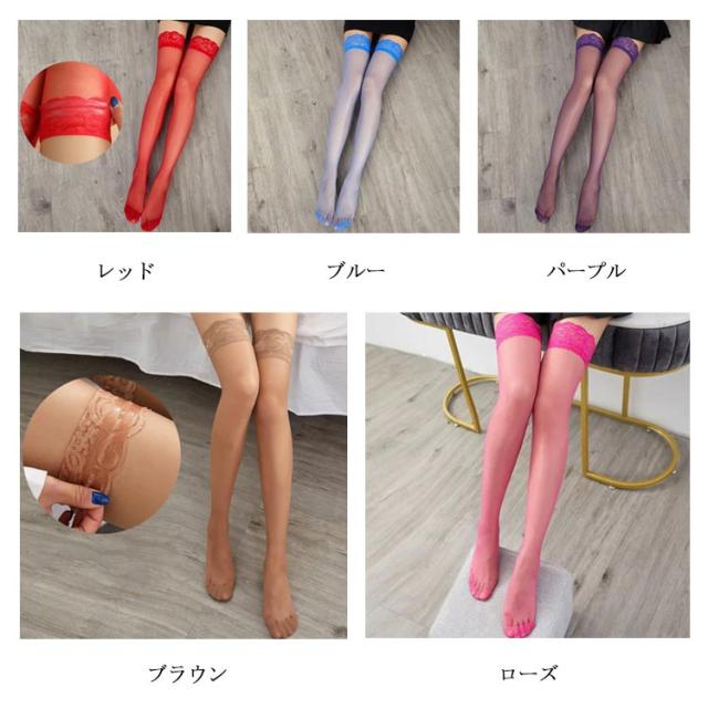 高級感 送料無料 透け感 コスチューム 全10色 ガーター不要 落ちない 膝上 セクシー ガーター風 ニーハイタイツ ハイストッキング 上品レース シリコンストッパー付き 美脚 コスプレ ガーターストッキング
