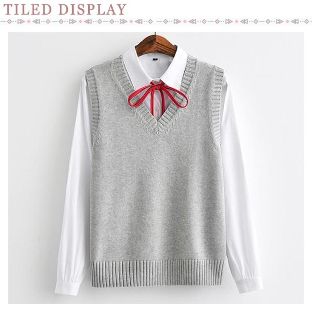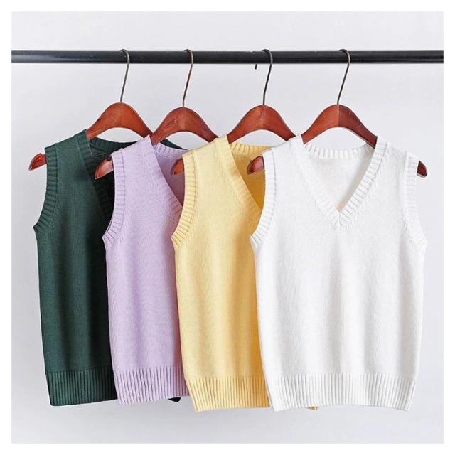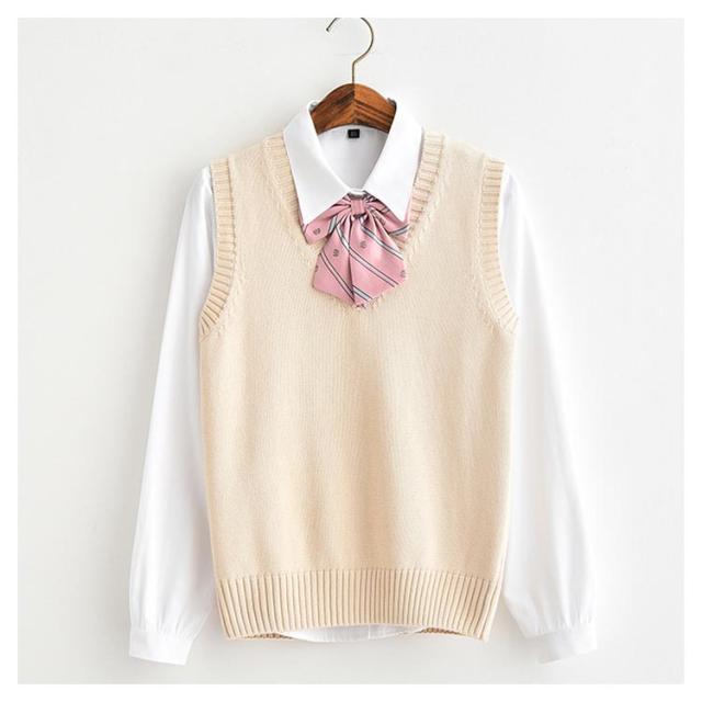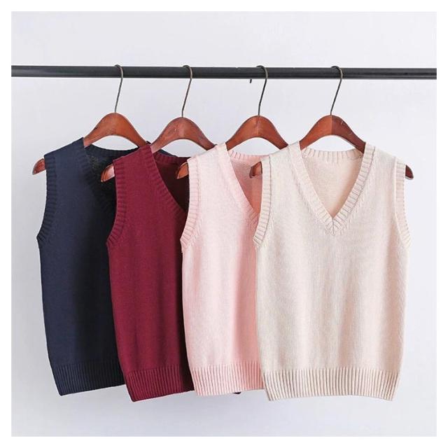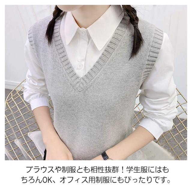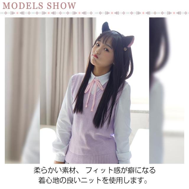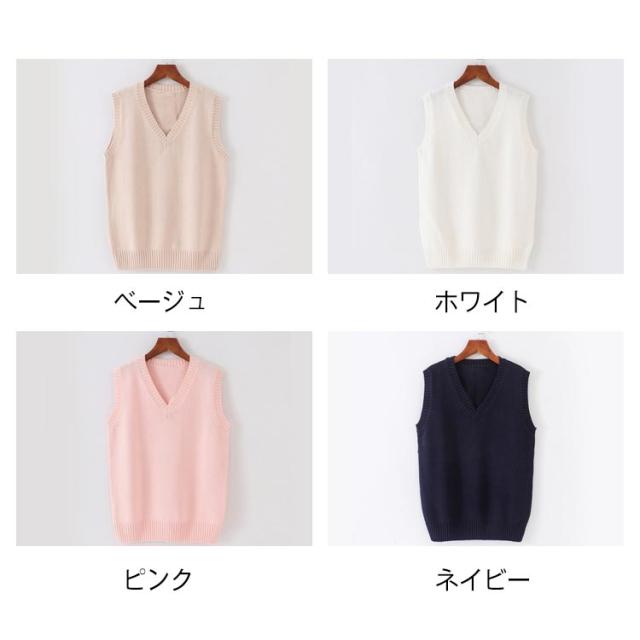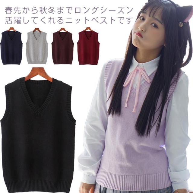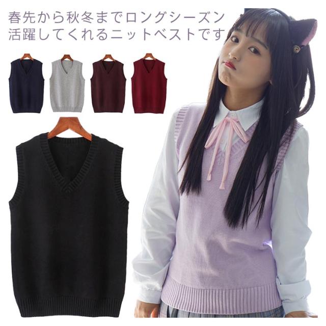 ニットベスト スクールベスト チョッキ Vネック ゆったり ノースリーブ 制服 JK カジュアル レディース 学院風 秋冬 学生服 コスプレ 高校生 通学 無地