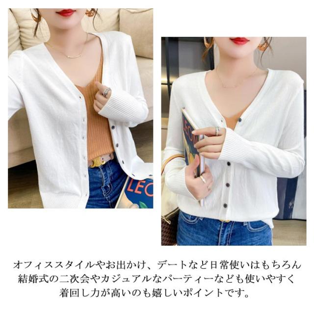| 定番で人気のカーディガン!シンプルなデザインで合わせるものを選ばず着回し力抜群! オフィススタイルやお出かけ、デートなど日常使いはもちろん、結婚式の二次会やカジュアルなパーティーなども使いやすく、着回し力が高いのも嬉しいポイントです。 コーディネートはワンピースやブラウスなどにさっと羽織れば綺麗目スタイルに。 tシャツなタンクトップにパンツなどカジュアルなスタイルの時にもさっと羽織れば綺麗目カジュアルミックスに。 | |