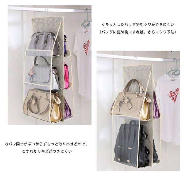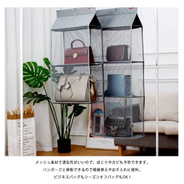 吊り下げ バッグ収納 収納 クローゼット カバン置き 棚ラック パッと見える 吊り下げ かばん カバン 吊下げ収納 鞄 収納 クローゼット 不織布 吊下げ 吊り下げ 収納ラック ラック2段式 バッグハンガー