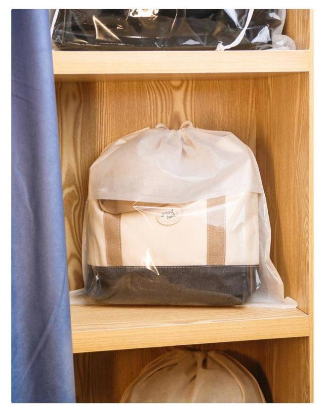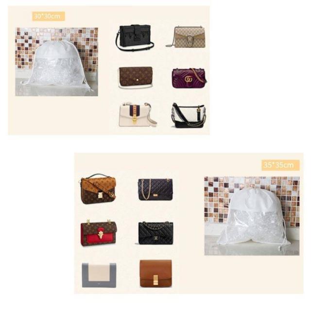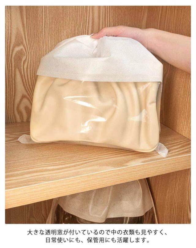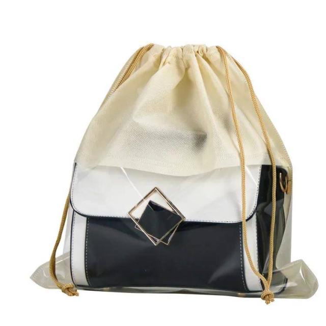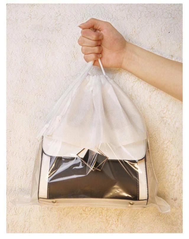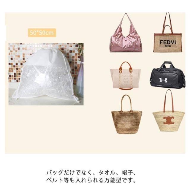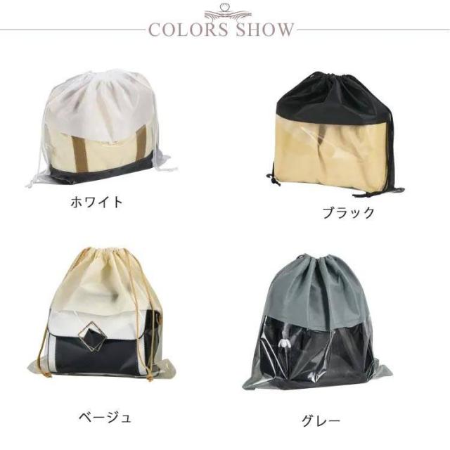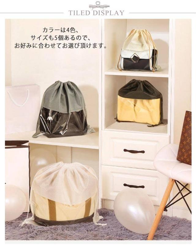 不織布 透明 袋 収納ケース 保管 クリア バッグ収納 鞄 防塵カバー ハンドルバッグ収納 カバン 5点セット バッグ保護 見やすい 折りたたみ 防湿 防カビホコリよけ お片づけ 整理 巾着