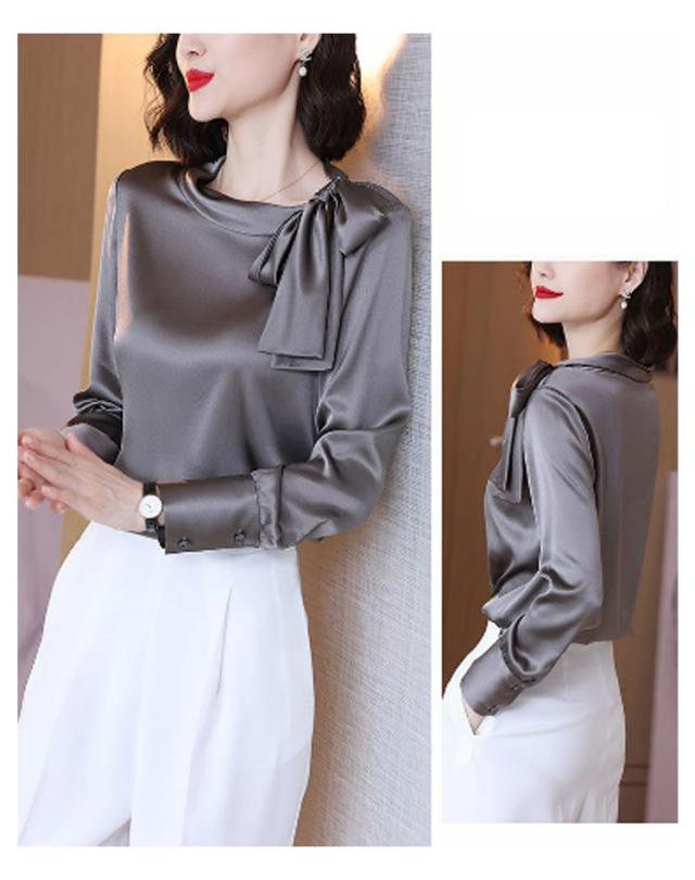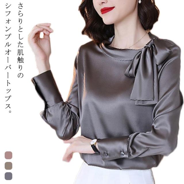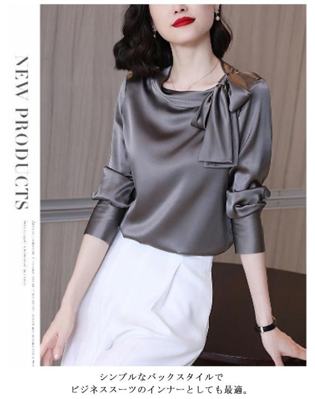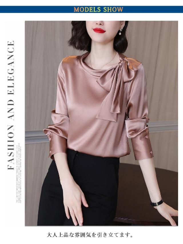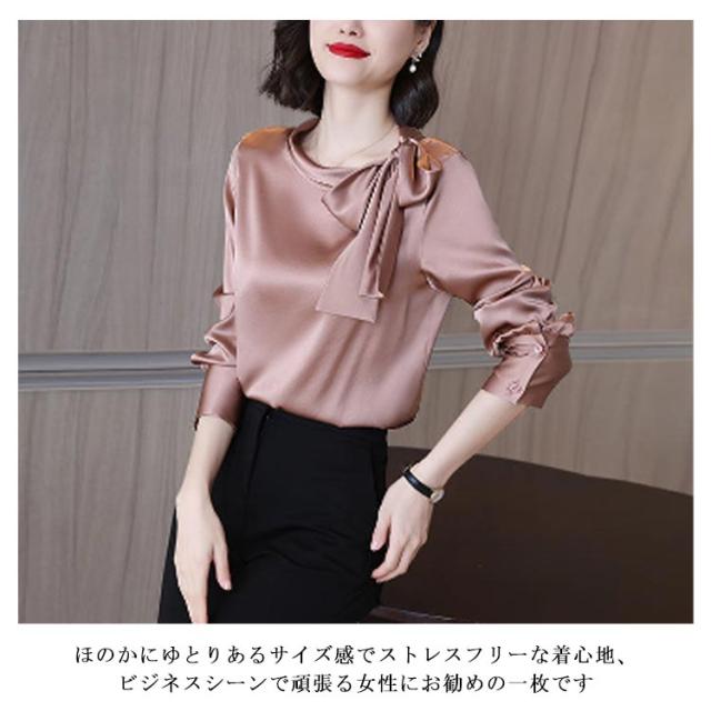 フォーマルブラウス トップス レディース スーツ ブラウス 長袖 ボウタイブラウス インナー 大人可愛い タイブラウス きれいめ カジュアル 大きいサイズ クルーネック オフィス おしゃれ インナー