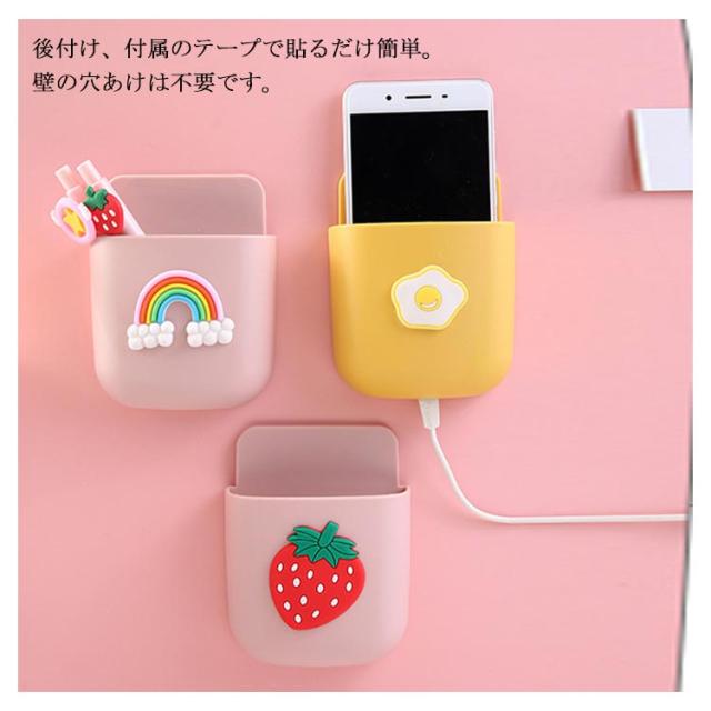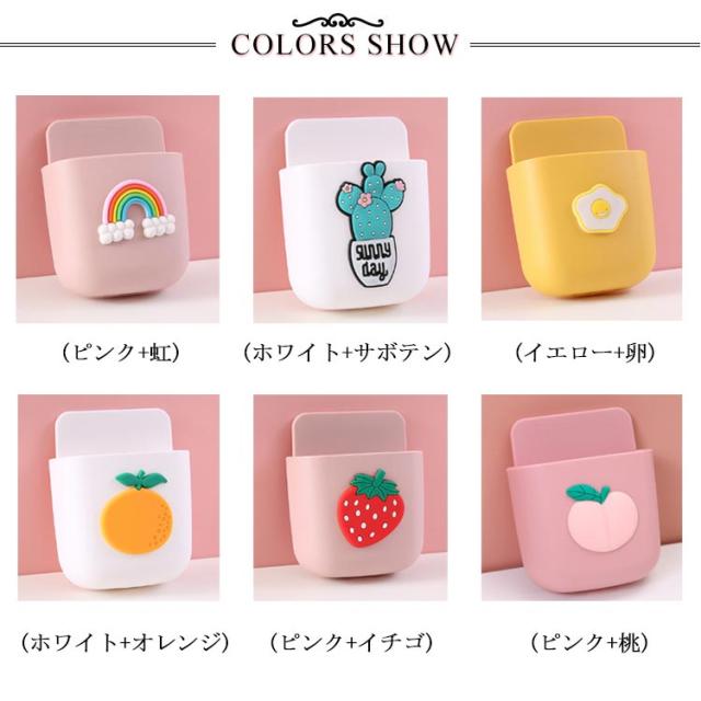 | 可愛い柄付き小物収納ケース♪ 選べる6タイプの可愛い柄付きデザイン♪ 後付け、付属のテープで貼るだけ簡単。壁の穴あけは不要です。 底面にコードを通す穴があいているので充電もできます。 ベッドの横や洗面所につけておけば、ちょっとスマホおおいておくのにも便利。 | |