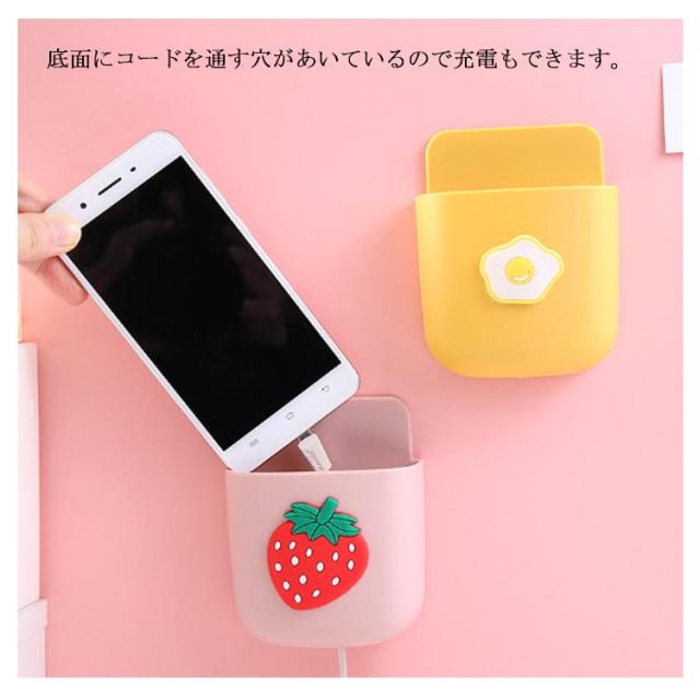 壁付け 小物収納ケース 穴あけ 不要 便利グッズ 小物入れ リモコン テレビ エアコン スマホ ベッドサイド ベッド 洗面所 可愛い 柄 果物 イチゴ もも 送料無料