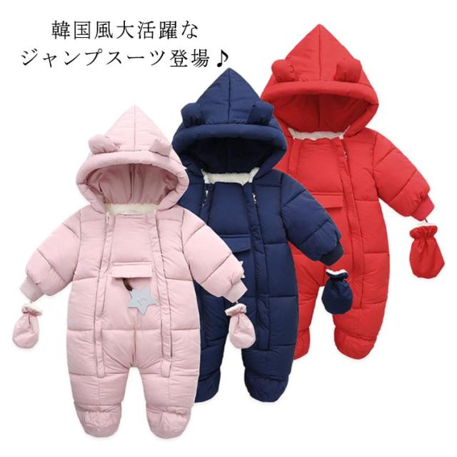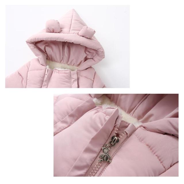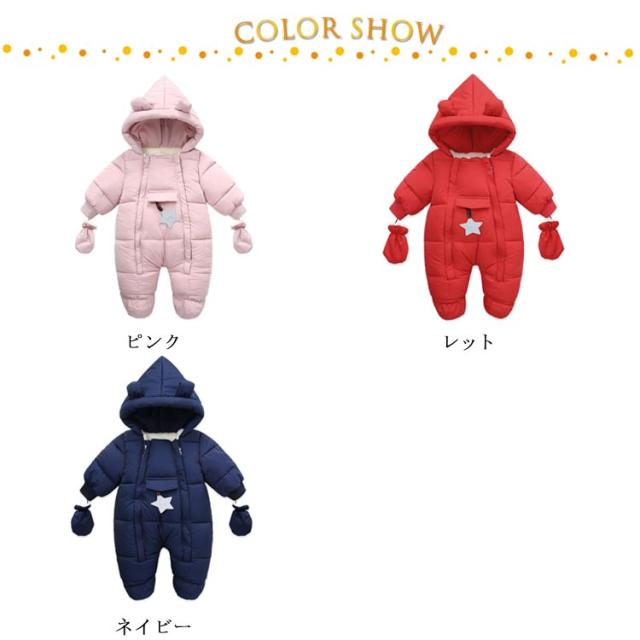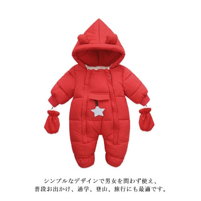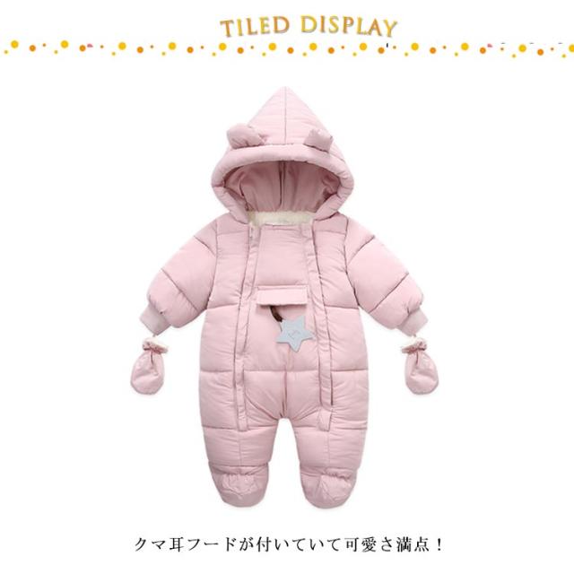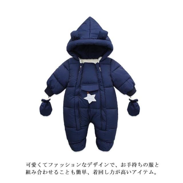 赤ちゃん 雪遊び ジャンプスーツ 男女兼用 おしゃれ 子供 防寒着 ダウンコート ジャンプスーツ ダウンジャケット 中綿コート 韓国風 ロンパース 可愛い フード付き アウター くま耳 秋冬 冬 新生児