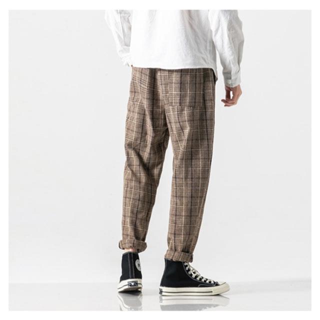 | カジュアルなコーデを選ばず合わせられる毎日履きたいパンツです。 チェック柄が目を引く分、シンプルなカラーでバランスを取ってくれます。 適度なゆとりを持たせルーズフィットシルエットで、気軽に使えるイージーな履き心地。 ウェストにゴム紐があって、サイズ調整可能ですから、締め付け感がなくてもっと快適に着られます。 ミリタリーはもちろん、カジュアルにもストリートにも幅広く穿きこなせるの1本です。 | |